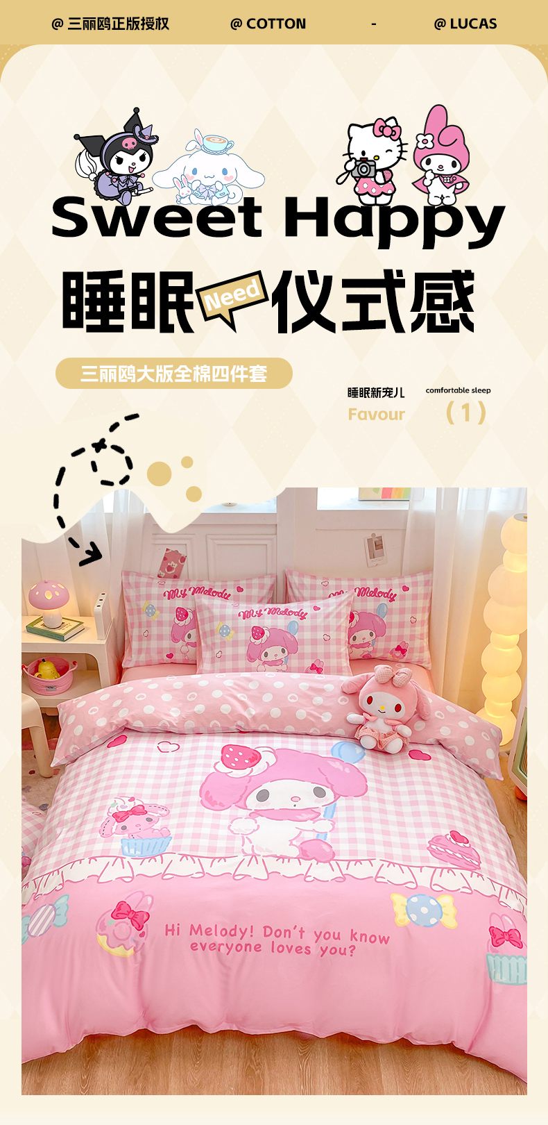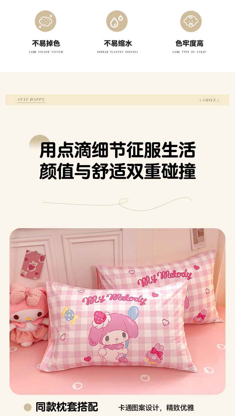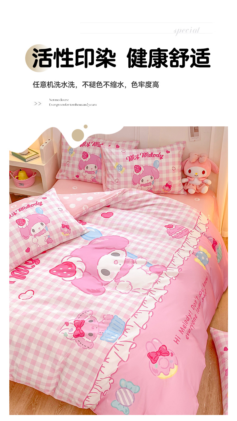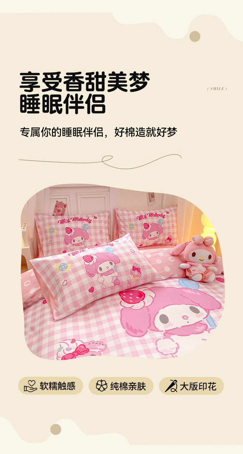 当前位置: 91家纺网 > 商品网购 > 床品套件 > 四件套 > 全棉普通四件套 > 博雅 2026春夏新款三丽鸥新花型全棉纯棉大版印花四件套 马卡龙美乐蒂