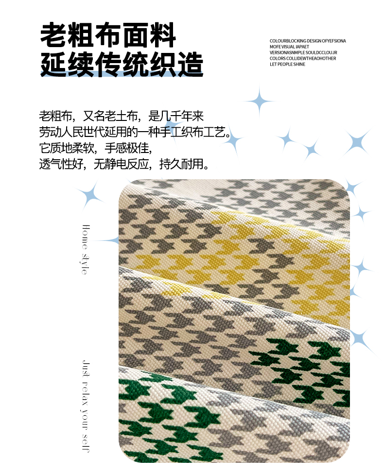 金鑫汇家纺 2026新款全棉老粗布单品枕套系列 同心千鸟格