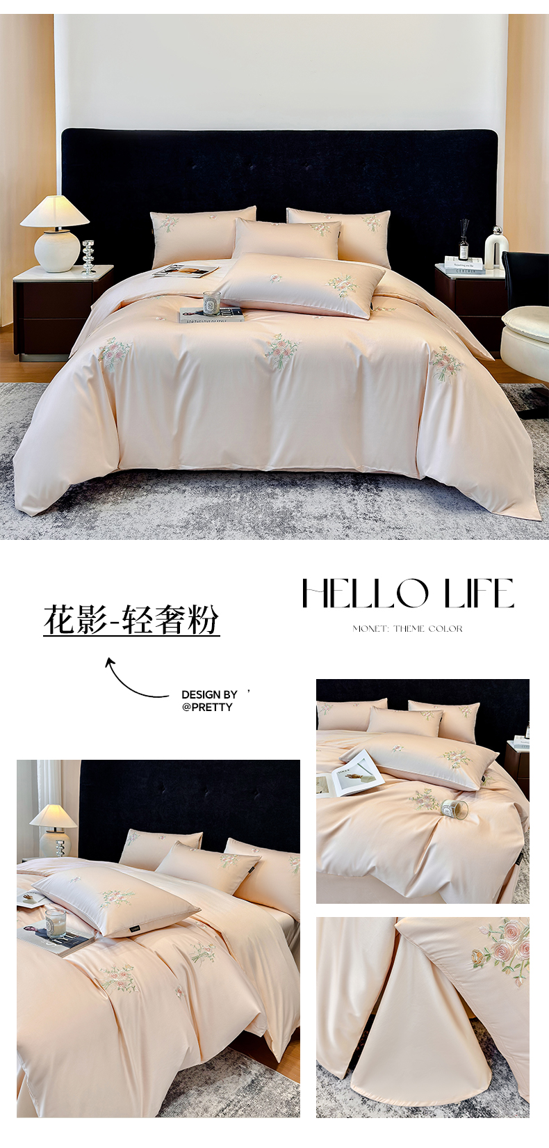 当前位置: 91家纺网 > 商品网购 > 床品套件 > 四件套 > 长绒棉四件套 > (总)欣宜家纺 2026新款50s纯棉全棉贡缎长绒棉刺绣绣花床上四件套【含高端礼盒】-花影系列