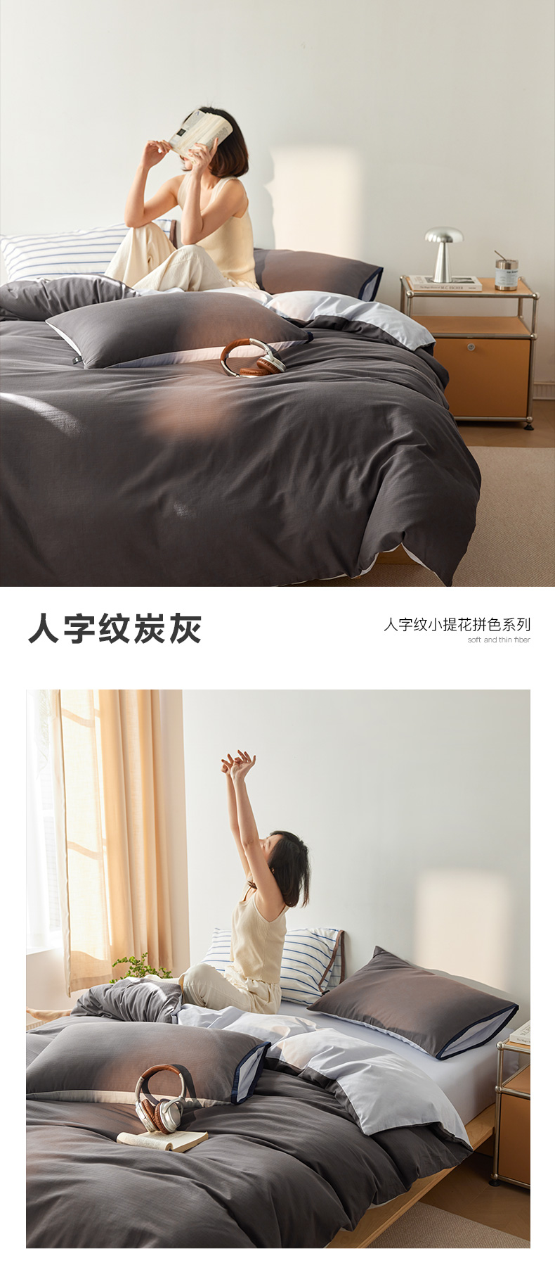 (总)佳汐蓝家纺 2026新款春夏人字纹小提花拼色系列四件套,人字纹山茶粉,人字纹藏青,人字纹韩绿,人字纹浅咖,人字纹浅蓝,人字纹炭灰