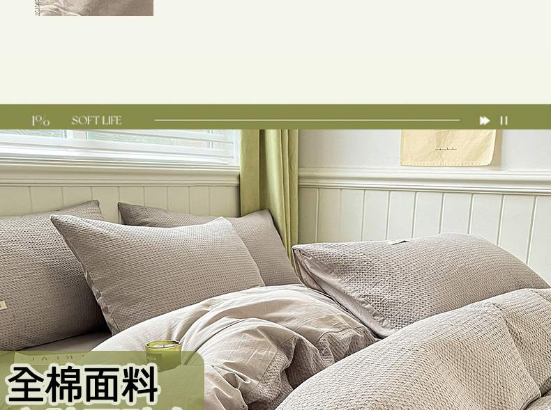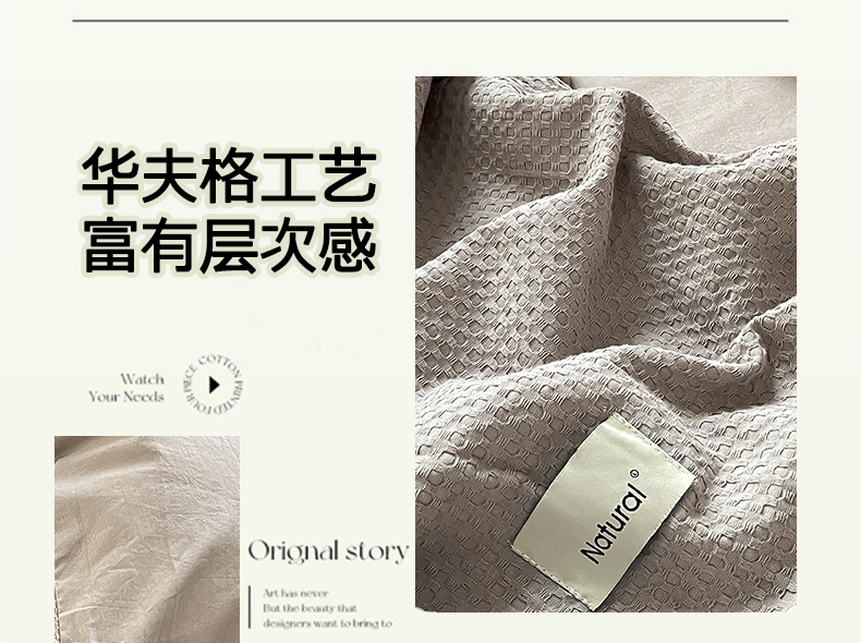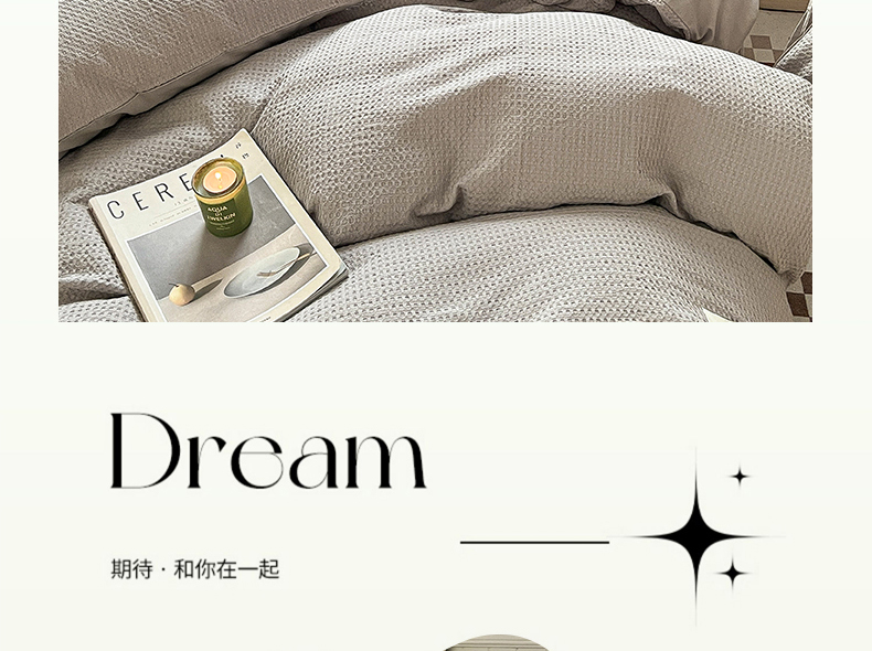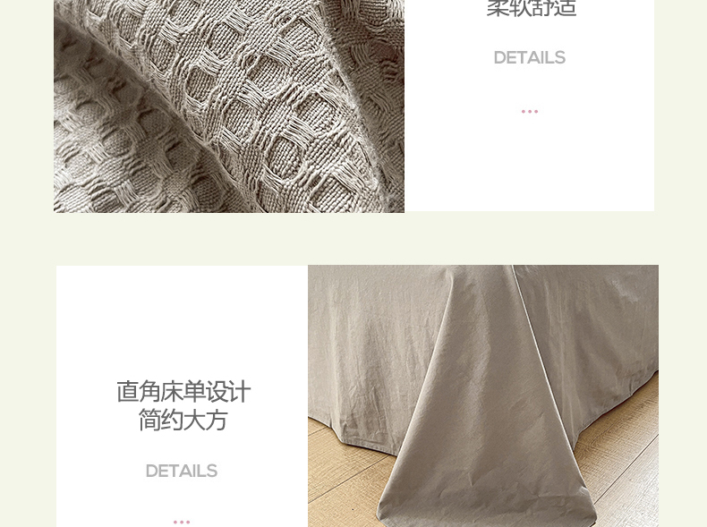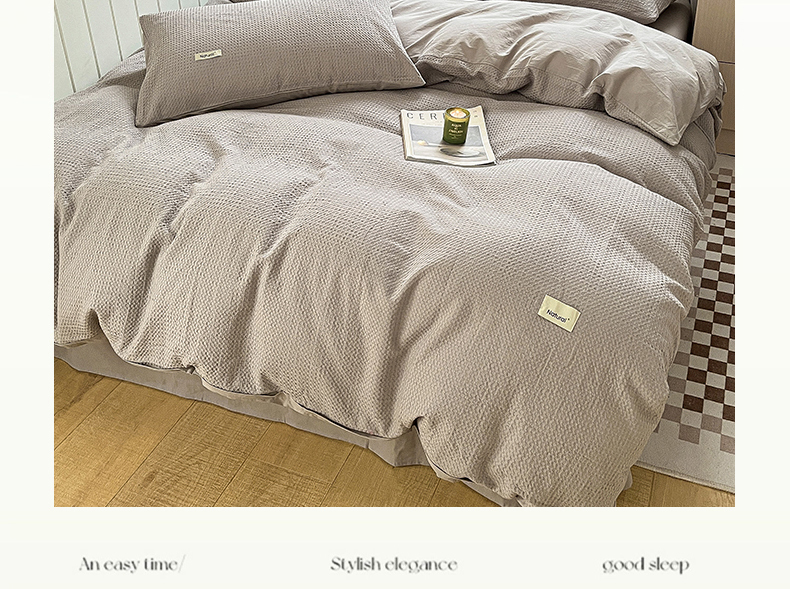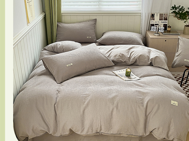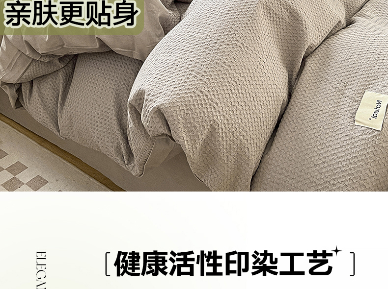 当前位置: 91家纺网 > 商品网购 > 床品套件 > 四件套 > 全棉普通四件套 > 琪格格纺织 2026新款纯棉纯棉色织肌理纹提花华夫格纯棉轻奢简约款四件套 华夫格-月光灰
