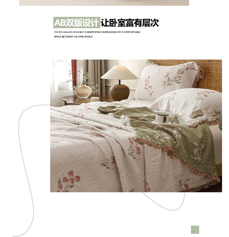 • 91家纺网 家纺一手货源 找家纺 (总)朴尔家纺-毛巾被 2026新款彩棉云柔棉三层纱布毛巾被,组合图仅做展示不可下单,花自盛开,物语花聚,幸运鹿,熊猫派对,绚烂繁花,银杏知秋,郁金香来