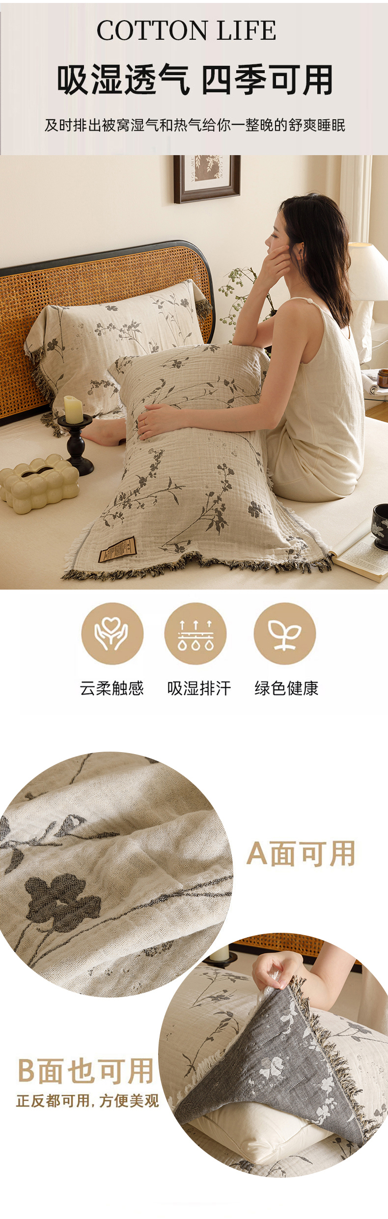 商品名称:(总)朴尔家纺-毛巾被 2026新款全棉流苏巨大尺寸60S纱布枕巾