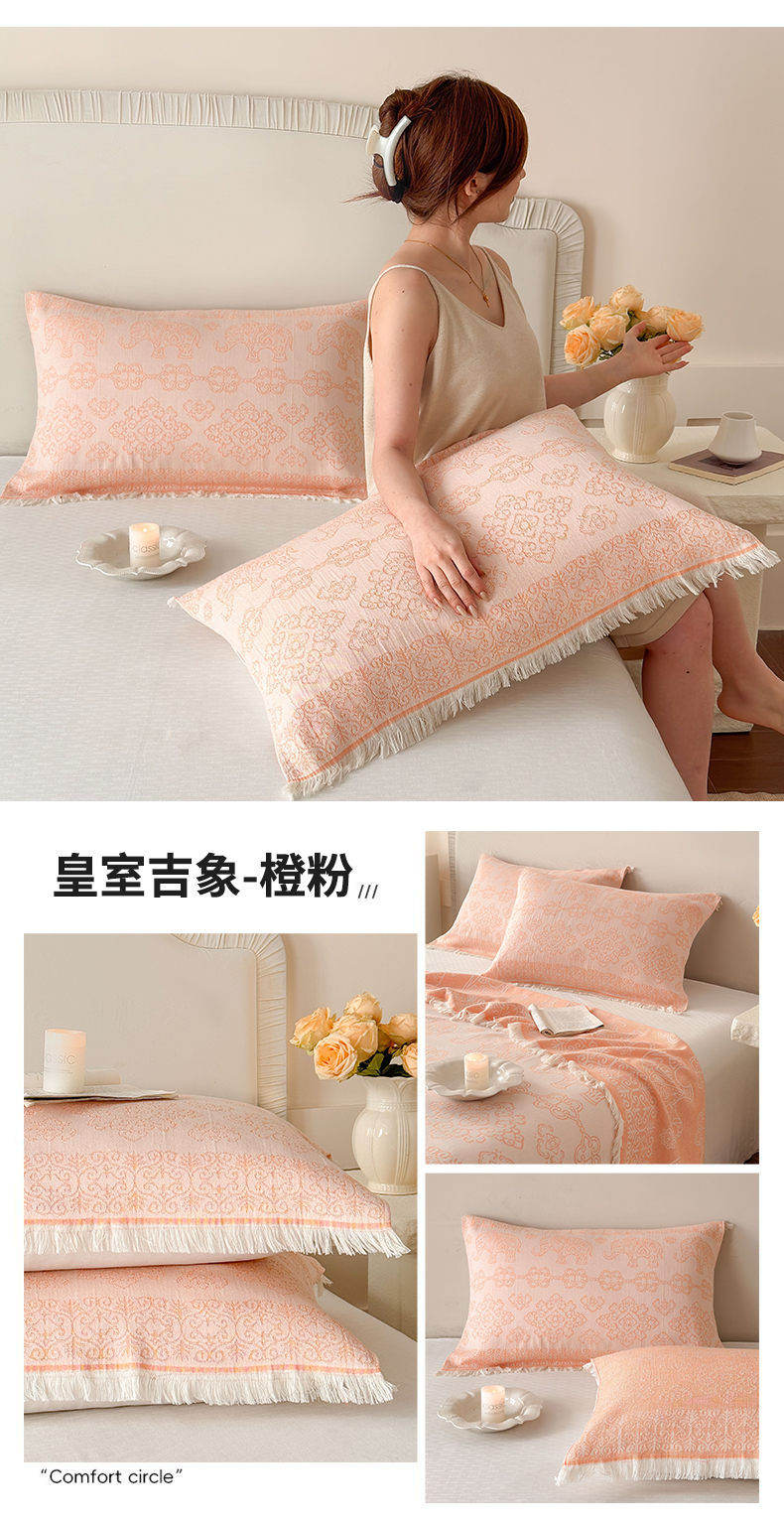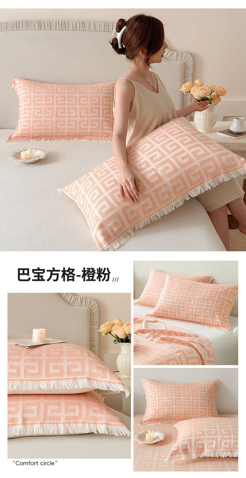 当前位置: 91家纺网 > 商品网购 > 床上用品 > 枕巾垫巾 > 朴尔家纺-毛巾被 2026新款长绒棉100s贡缎丝光棉纯棉流苏纱布枕巾 优雅欧纹-橙粉