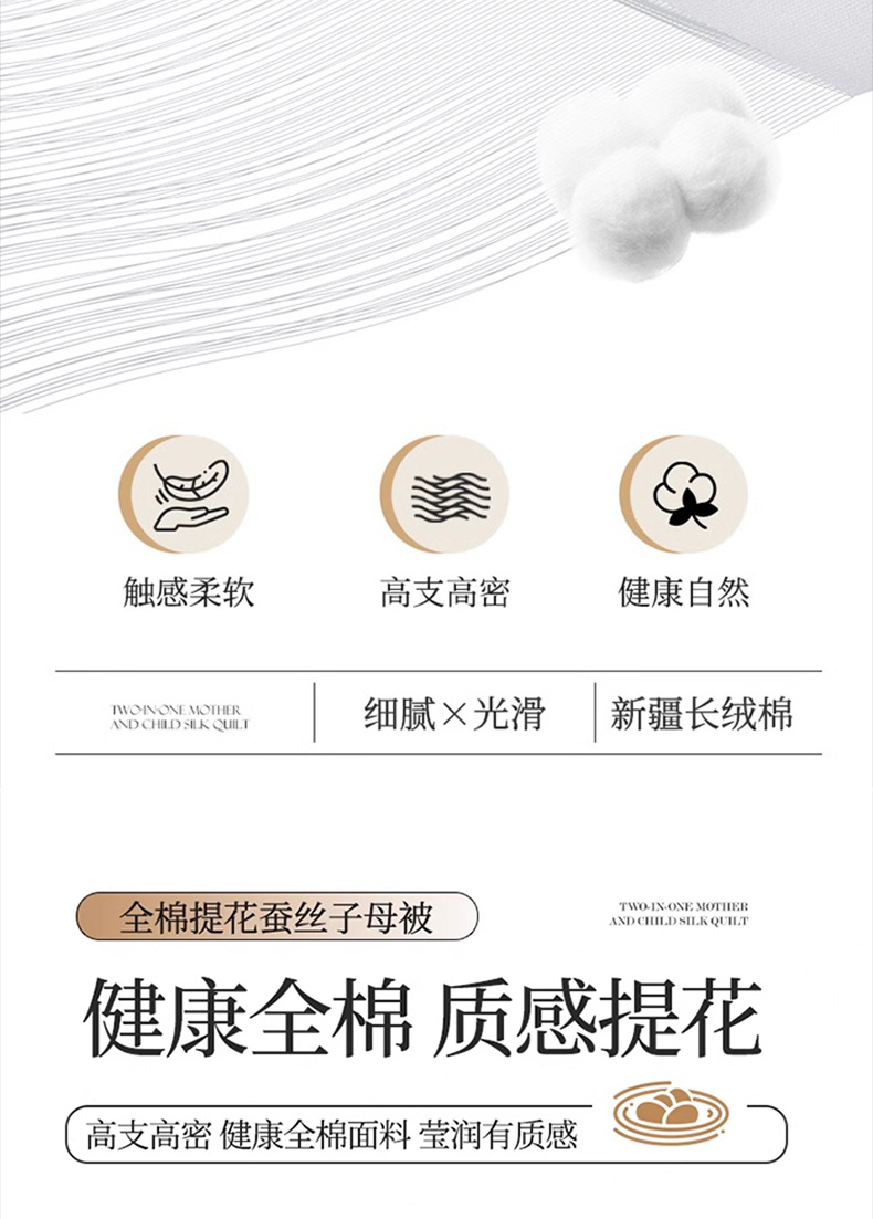 (总)犇牛仓储供应链 2026新款全棉提花蚕丝蛋白拉链二合一子母被被子被芯