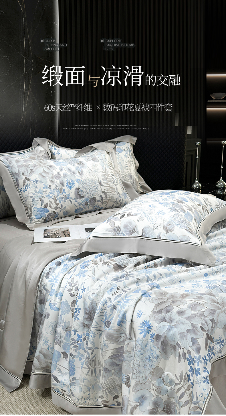 • 91家纺网 家纺一手货源 找家纺 岚司羽 2026春夏新款60天丝夏被四件套夏凉被空调被系列 清禾