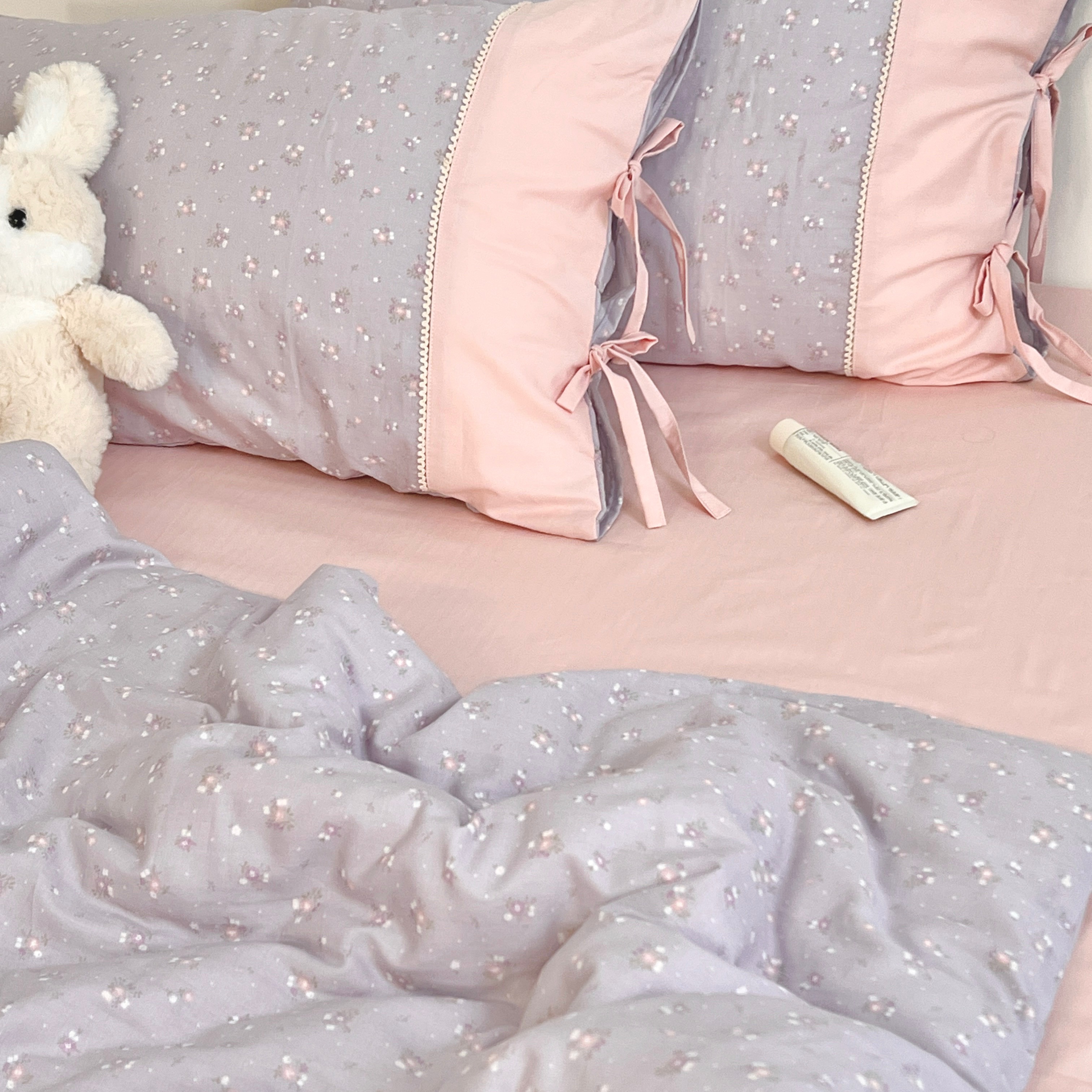 当前位置: 91家纺网 > 商品网购 > 床品套件 > 四件套 > 其它四件套 > 荣轩家居 2026新品韩式拼接系绳蝴蝶结工艺款四件套(铺床版) 絮语