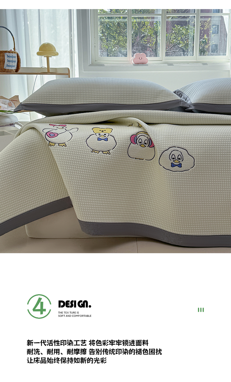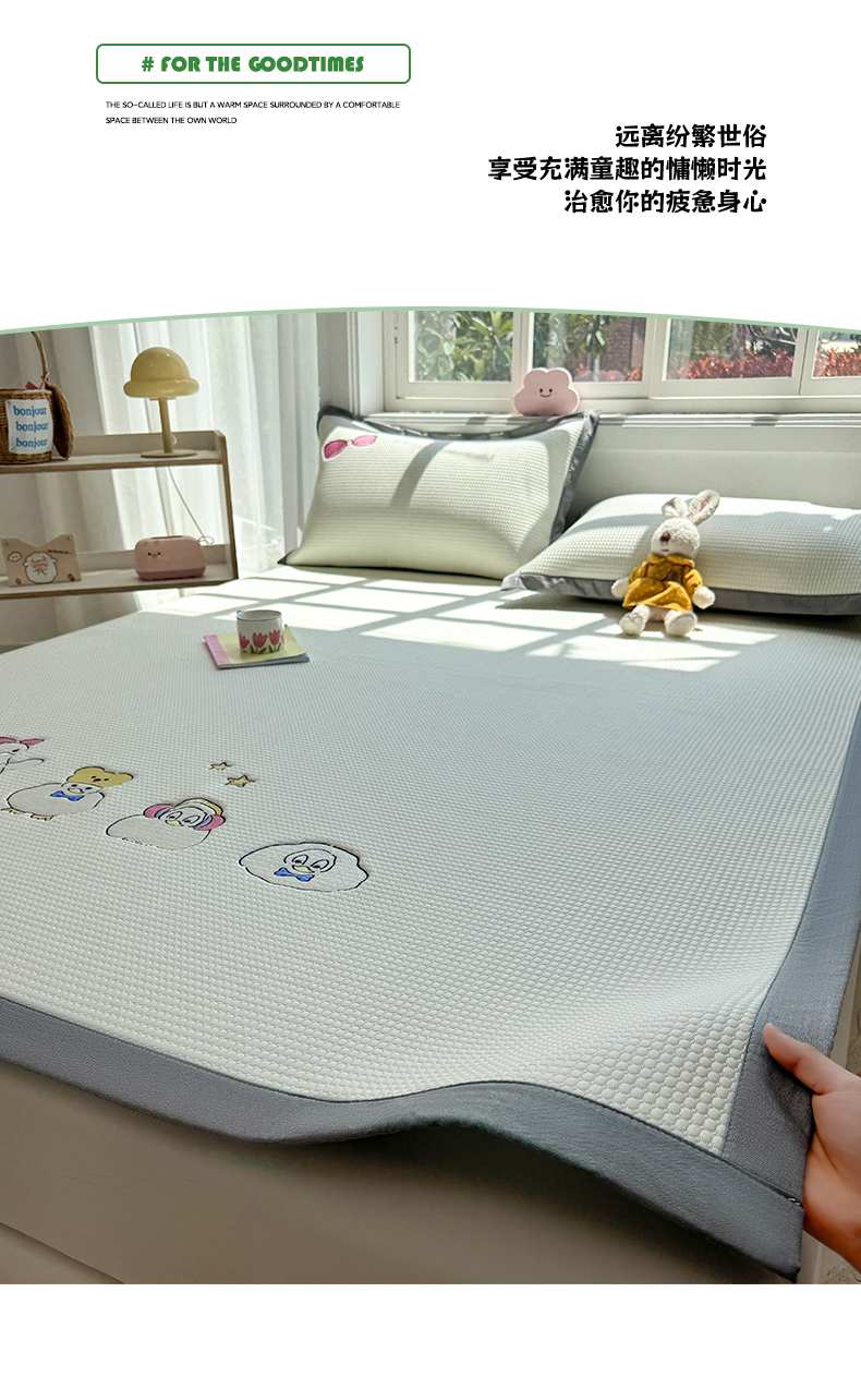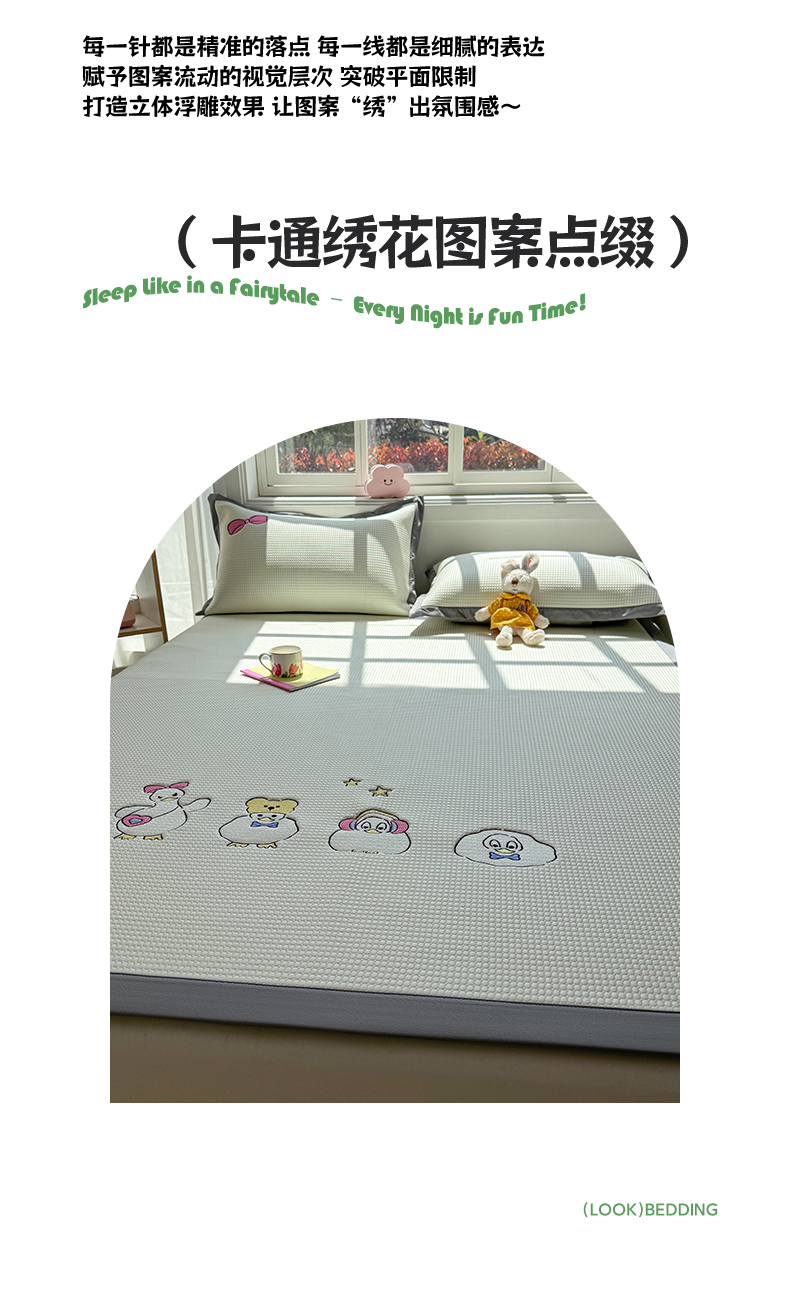 商品名称:凯罗 2026新款华夫格凉泡泡绣花凉席席子-床席款 快乐吖