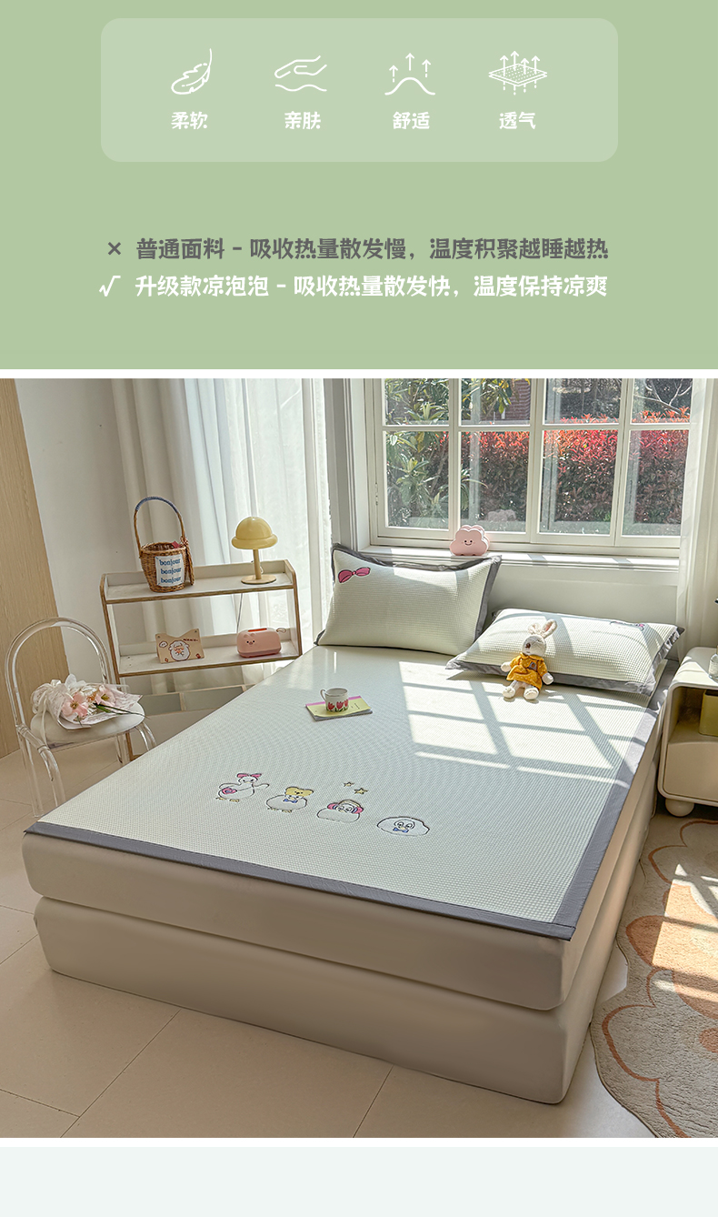 (总)凯罗 2026春夏凉豆豆小红书爆款A类乙纶PE凉豆豆床席款可水洗床席,波点草莓-粉,布丁萌萌熊,小萌狗,小南瓜-桔
