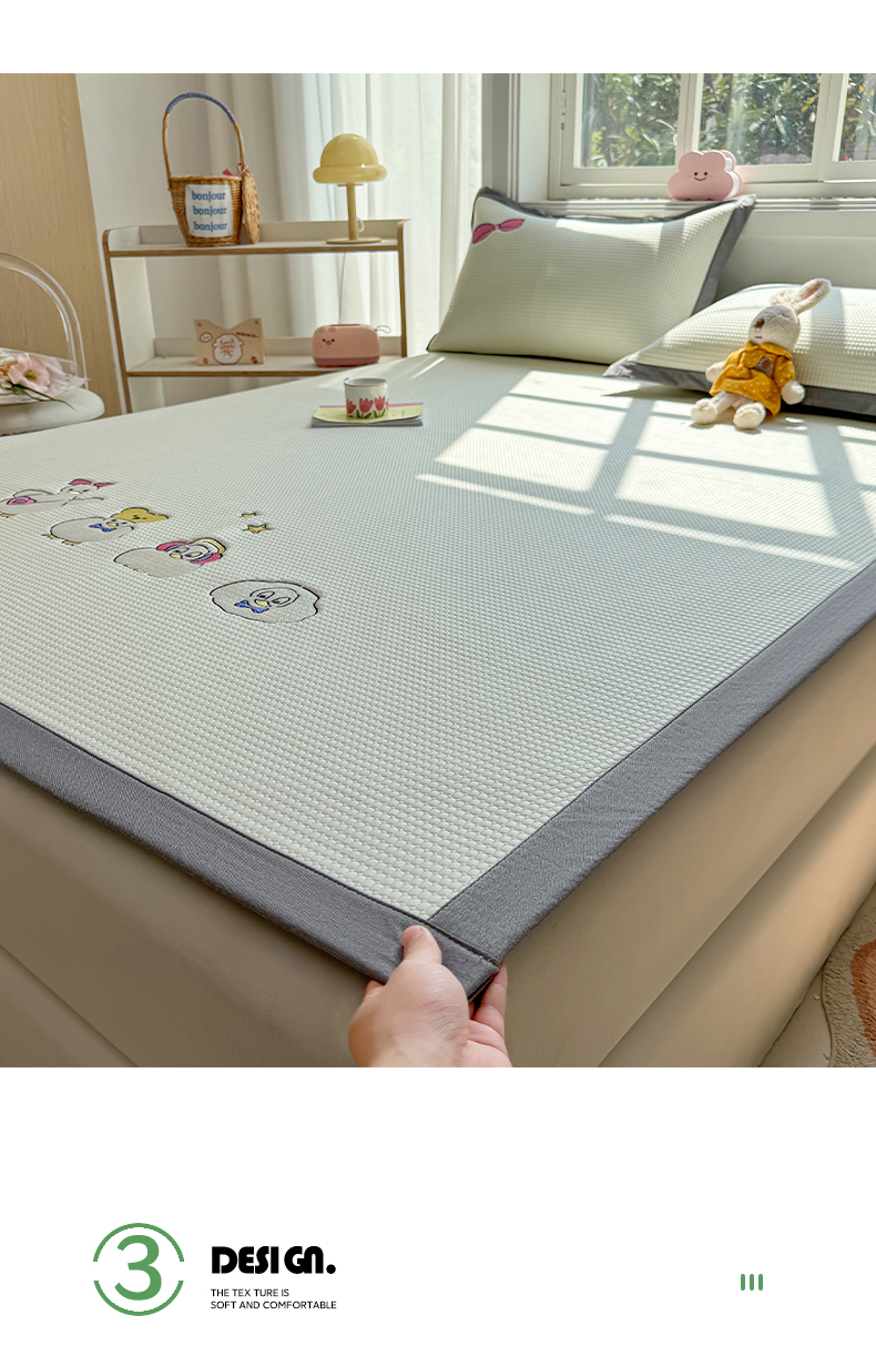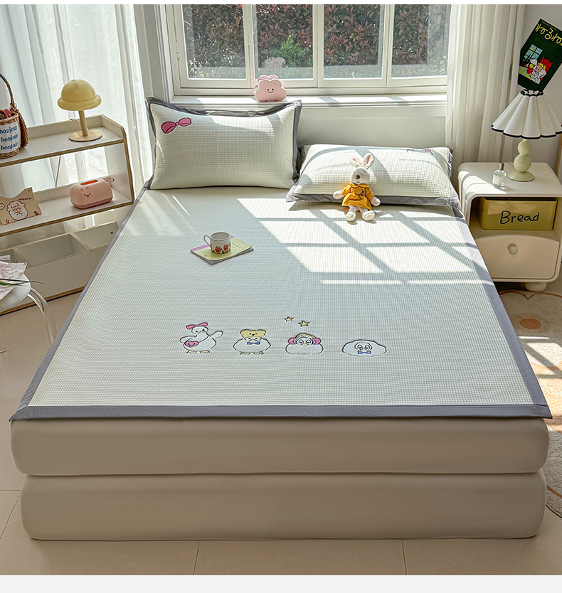 (总)凯罗 2026新款可水洗凉豆豆夏季席子凉席三件套,Hello--熊,爱心小熊--浅粉,敦敦熊--浅粉,敦敦熊--蓝灰,爱心小熊-咖,花儿朵朵--浅粉