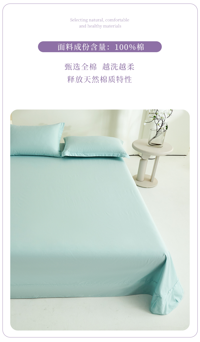 • 91家纺网 家纺一手货源 找家纺 元元家居(元元被业) 2026新款全棉纯棉13372套件及单品【纯色款】-单床单床单单件 天梦蓝
