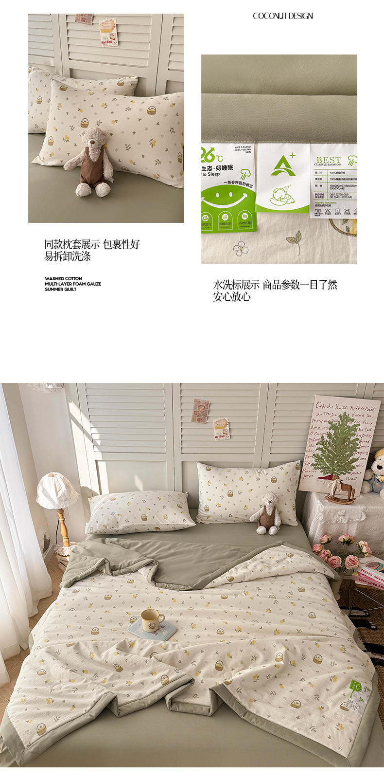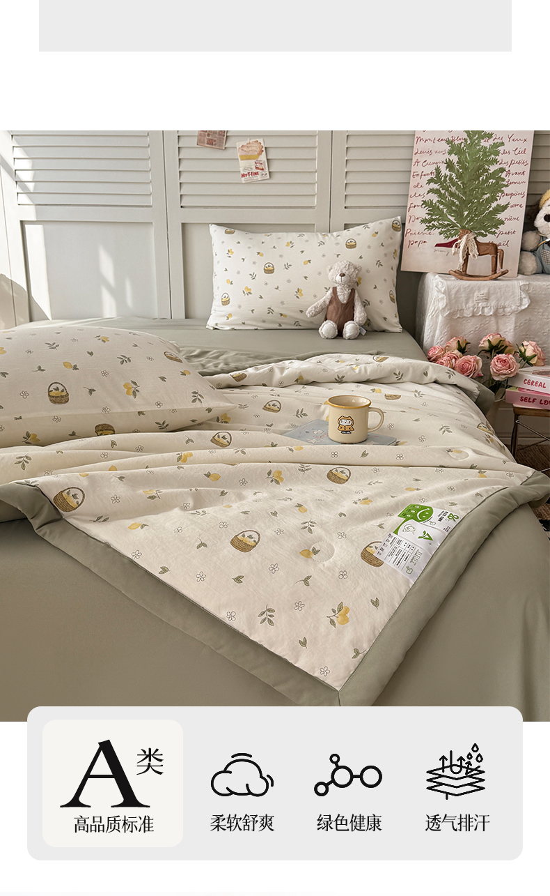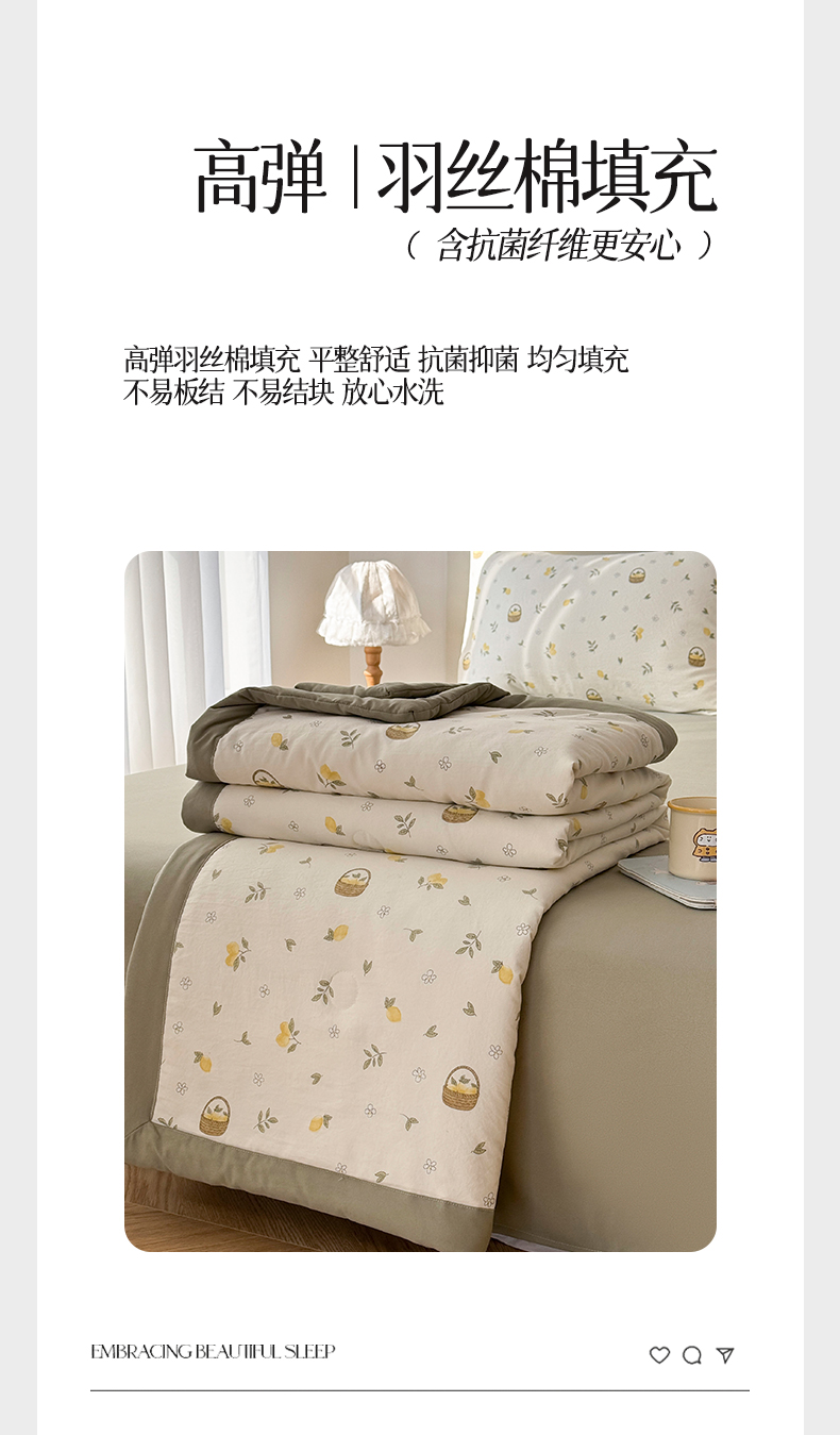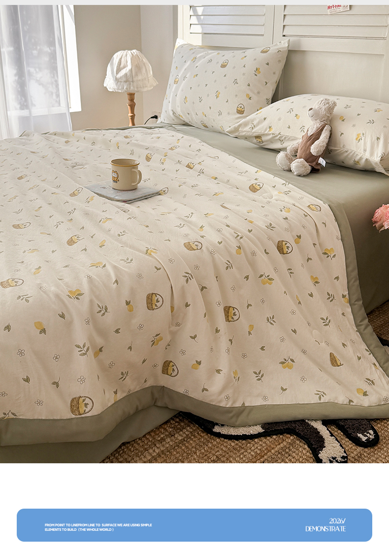 当前位置: 91家纺网 > 商品网购 > 床品套件 > 四件套 > 夏被四件套 > 盛凡家纺 2026新款小清新抗菌夏被夏凉被空调被被子被芯夏被四件套 柠风漫织