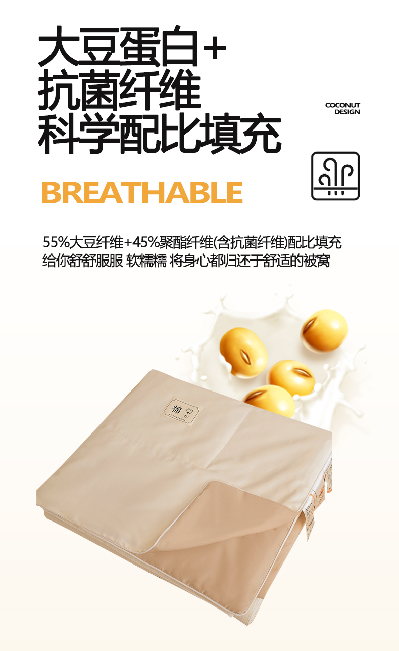 • 91家纺网 家纺一手货源 找家纺 盛凡家纺 2026新款133*72全棉A类55大豆抗菌夏被夏凉被空调被 茶白+奶咖