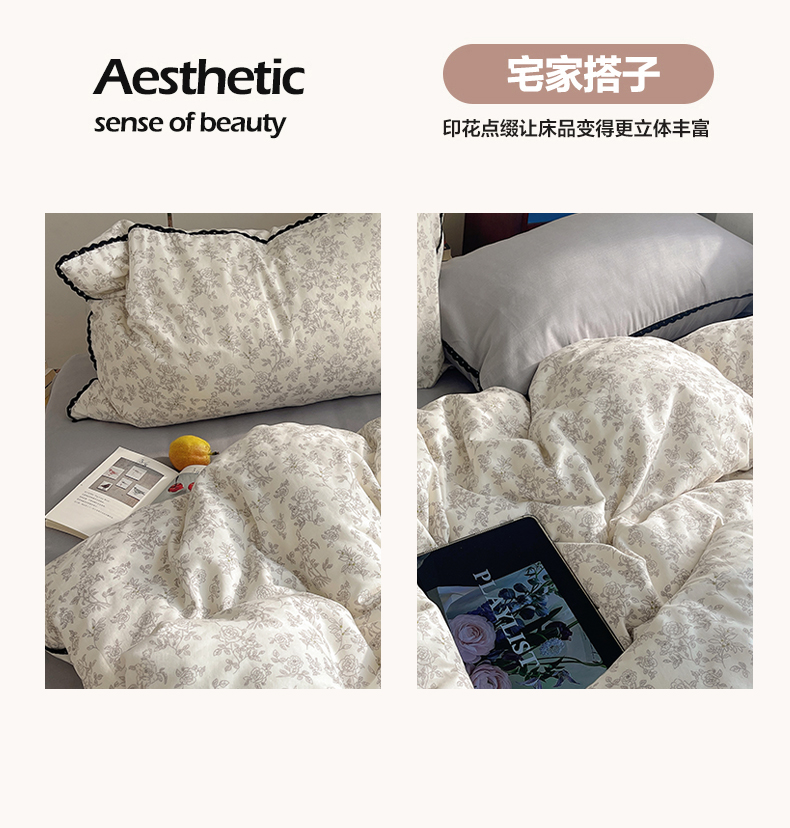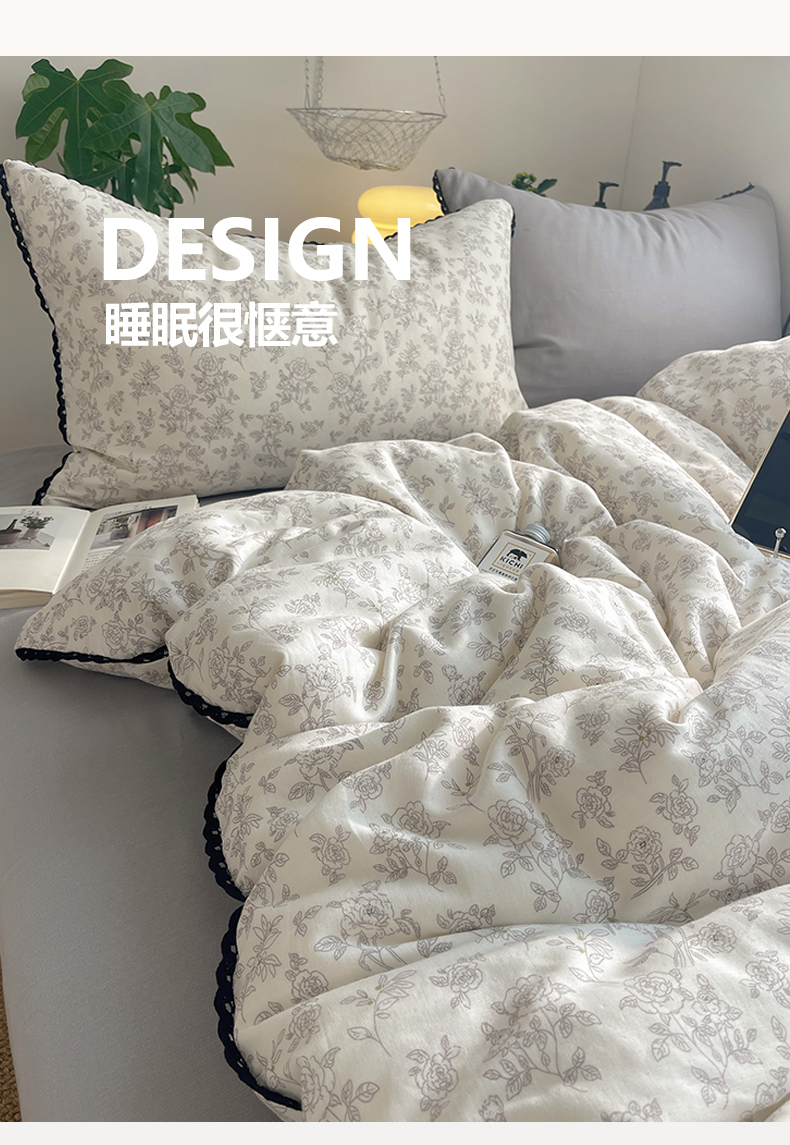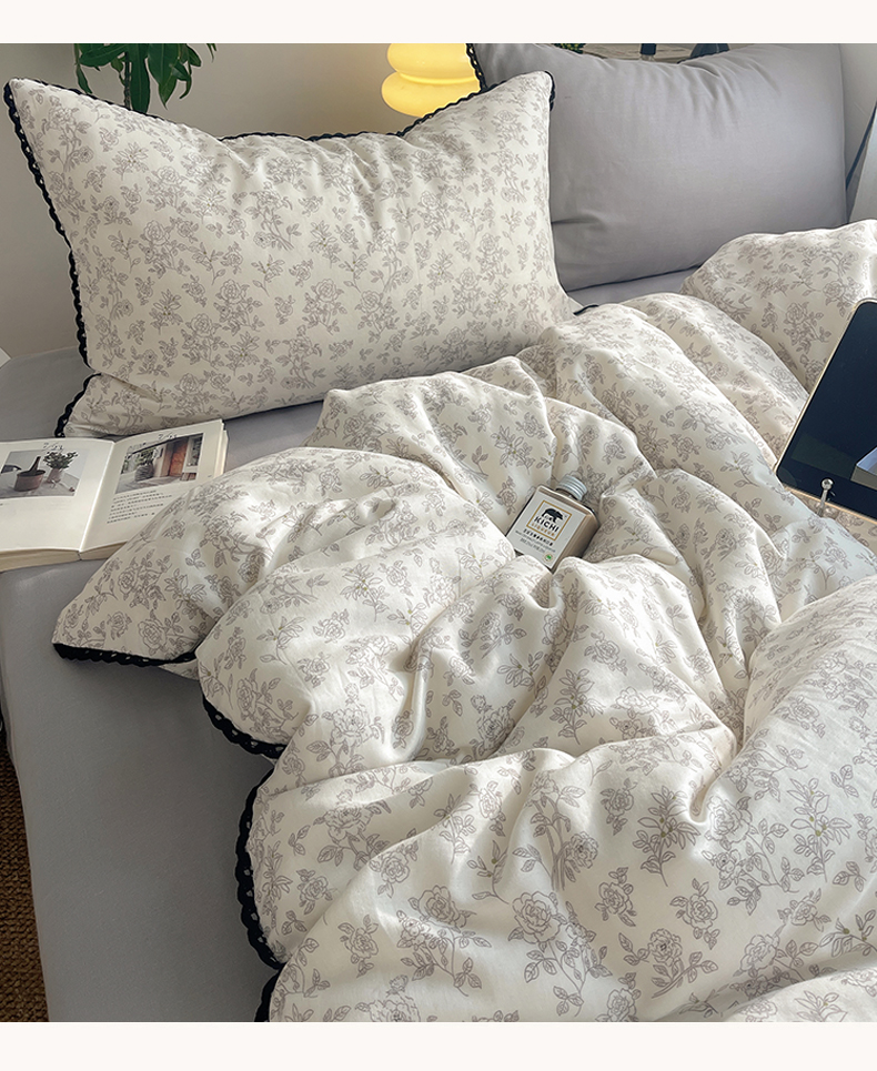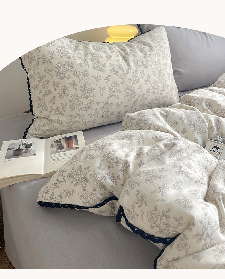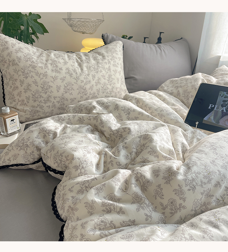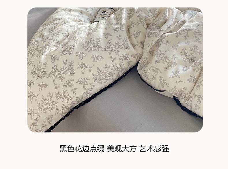 当前位置: 91家纺网 > 商品网购 > 床品套件 > 四件套 > 全棉普通四件套 > 三朵家纺 2026新款全棉纯棉双层纱小黑花边四件套 枝蔓