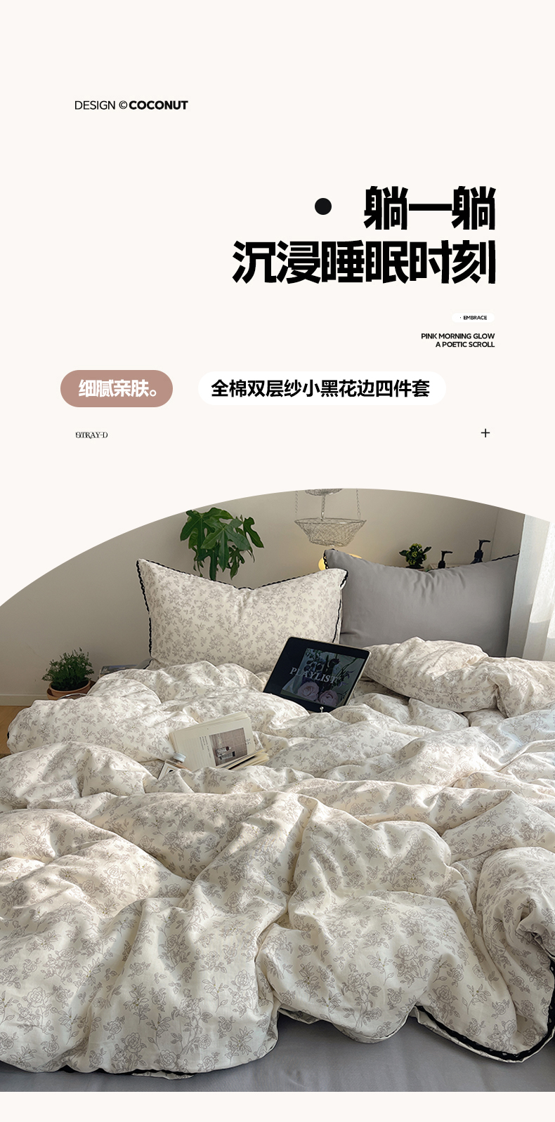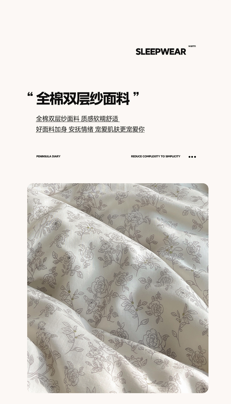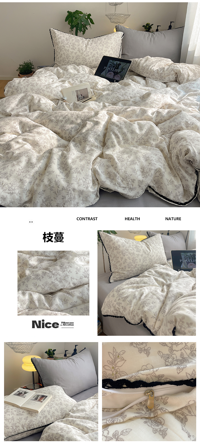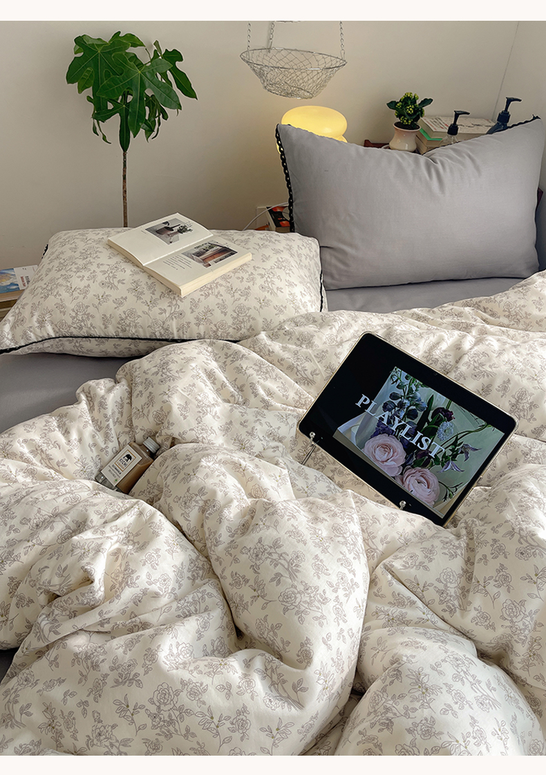 当前位置: 91家纺网 > 商品网购 > 床品套件 > 四件套 > 全棉普通四件套 > 三朵家纺 2026新款全棉纯棉双层纱小黑花边四件套 枝蔓
