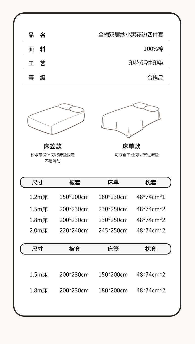 【床笠款】1.8四件套-被套200x230 | ¥160.00 |