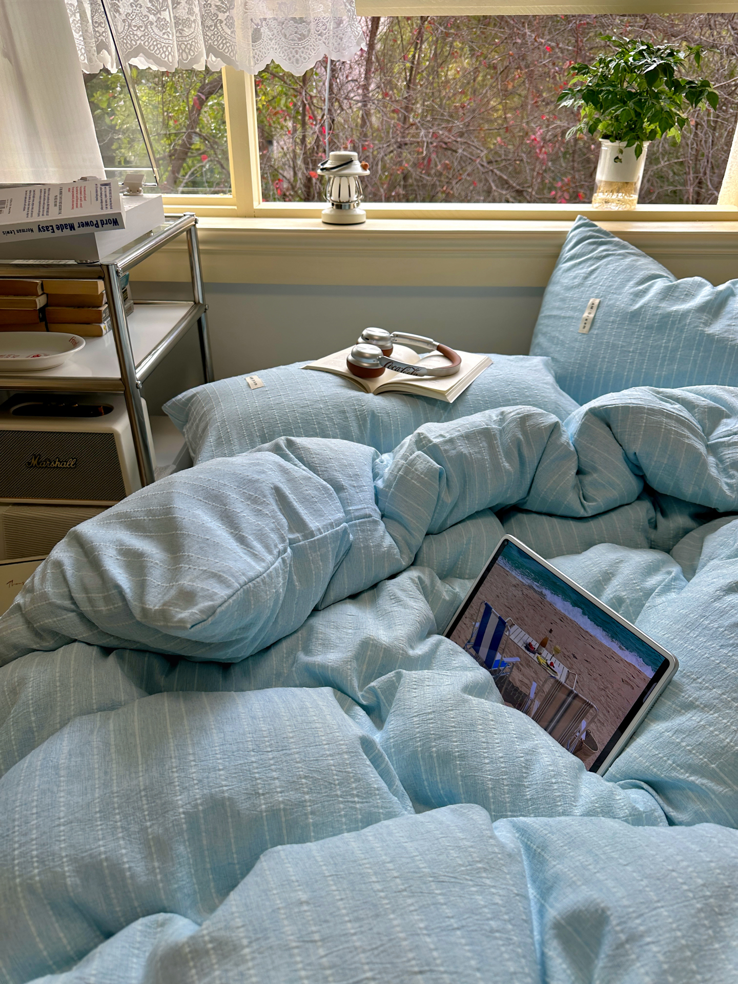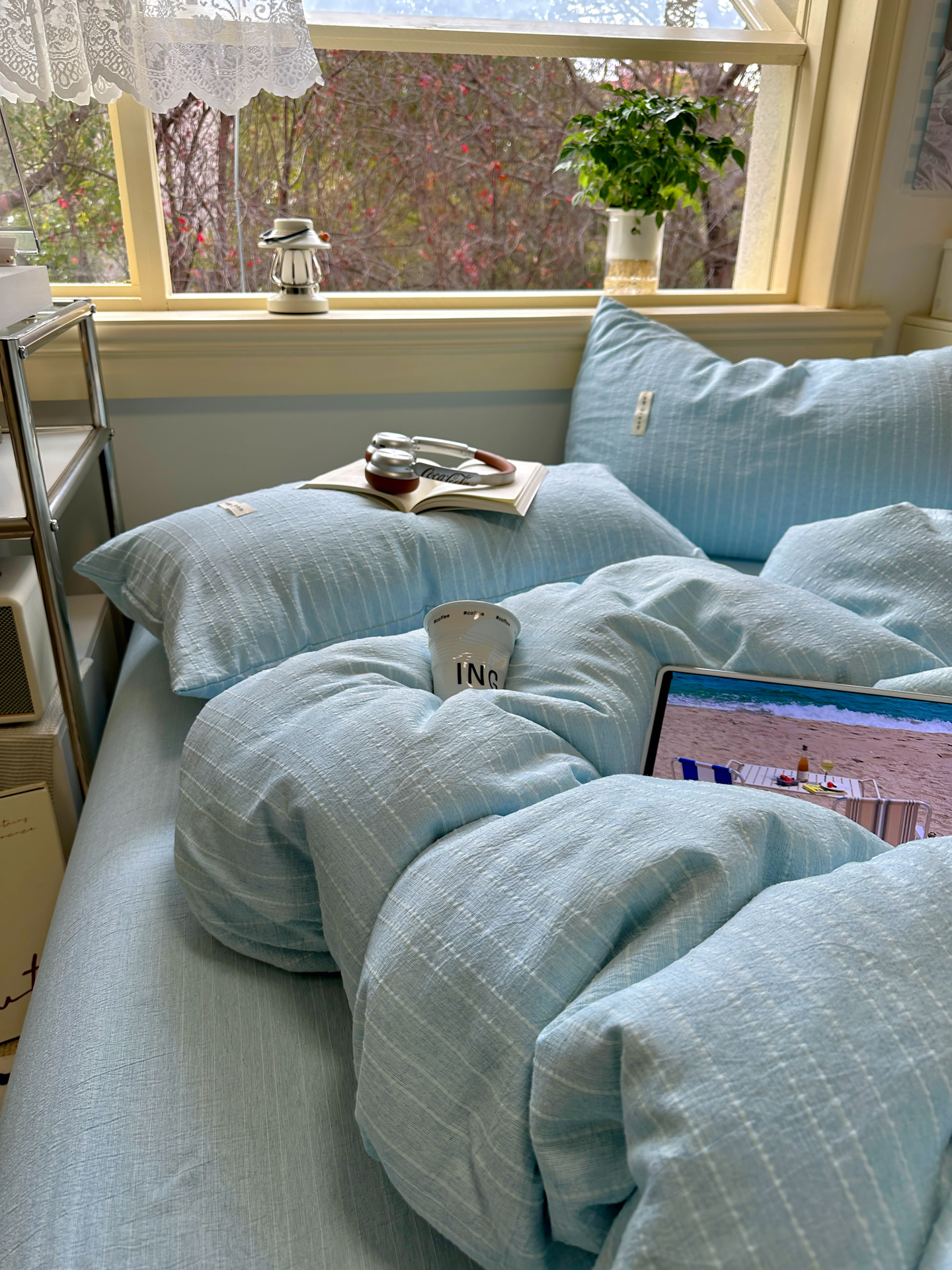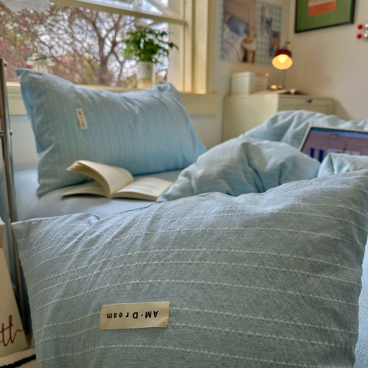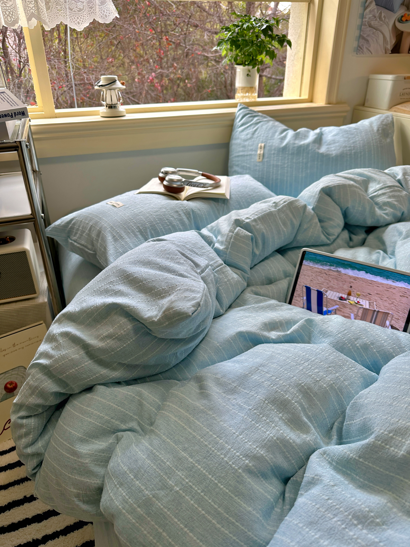 当前位置: 91家纺网 > 商品网购 > 床品套件 > 四件套 > 化纤普通四件套 > 优兰朵家纺 2026新款简约素色亚麻风纯色无印四件套 天蓝-素然
