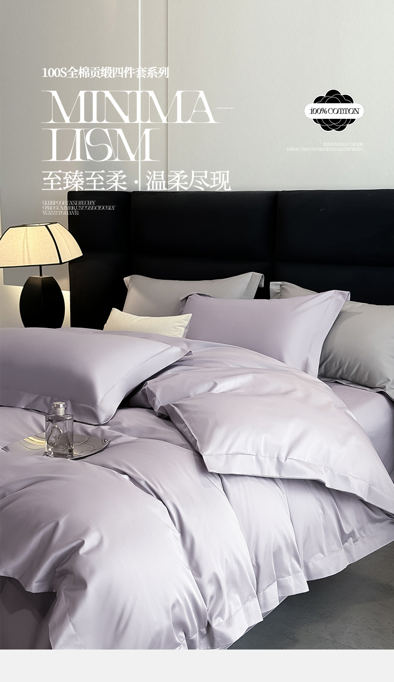 商品名称:朵希曼 2026春夏新款纯色贡缎长绒棉纯棉系列四件套 梦幻紫