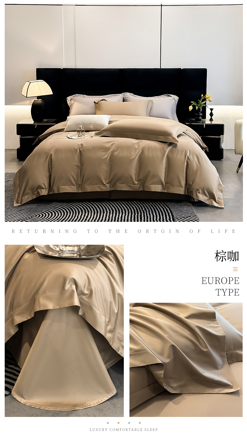 (总)朵希曼 2026春夏新款纯色贡缎长绒棉纯棉系列四件套,宾利蓝,典雅灰,湖水兰,梦幻紫,米黄,墨绿,藕粉,棕咖