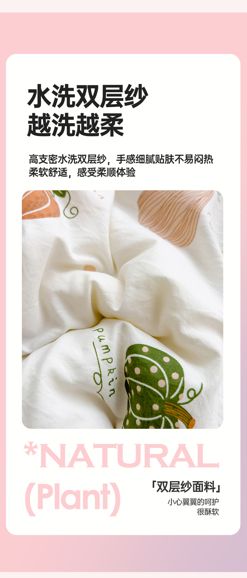 商品名称:默忆 2026新款水洗棉双层纱夏被夏凉被空调被被子被芯 南瓜日记
