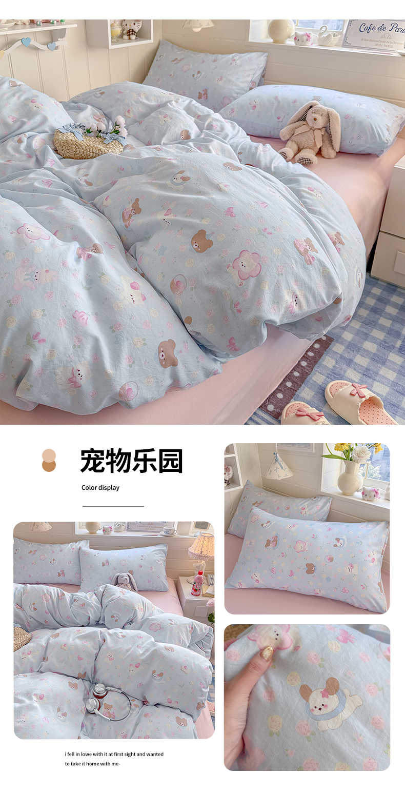 当前位置: 91家纺网 > 商品网购 > 床品套件 > 四件套 > 其它四件套 > 罗亿家纺 2026年新款泡芙水洗棉双层纱四件套 宠物乐园