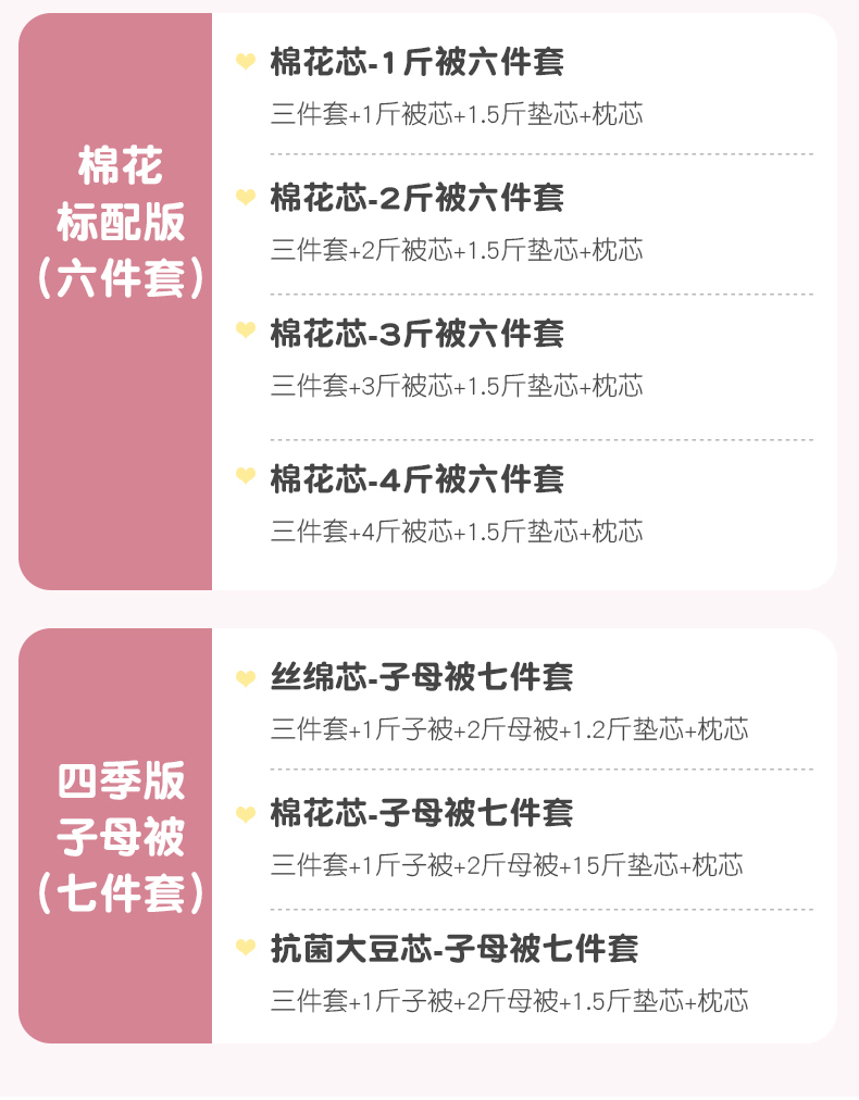 大豆芯-子母被7件套(三件套+1斤子被+2斤母被+1.5斤垫芯+枕芯)