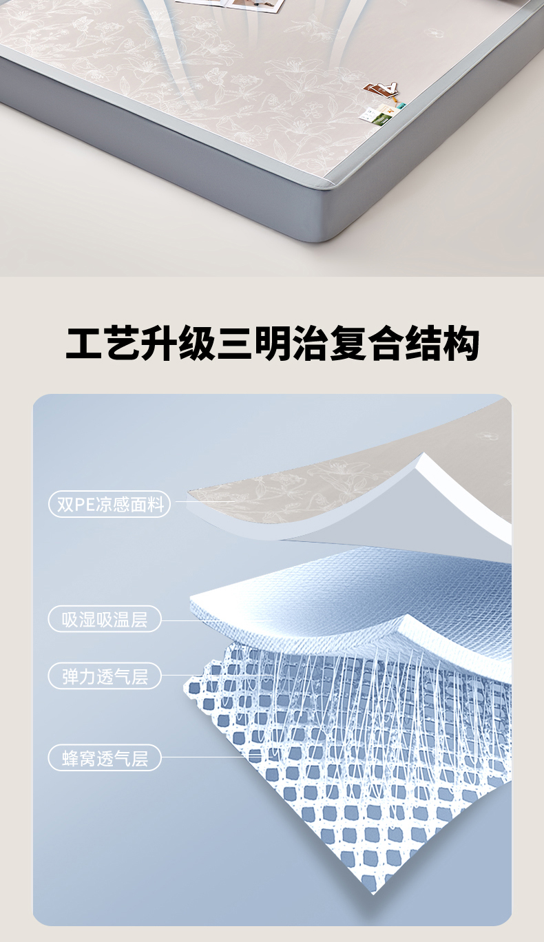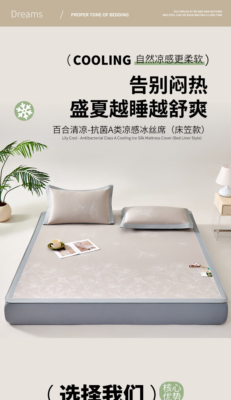 商品名称:小牛席业 2026新款【实拍风格】双PE凉感-百合清凉冰丝席系列(床笠款) 灰色