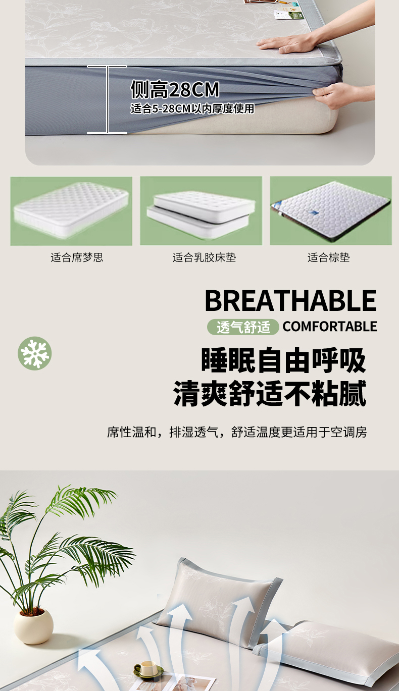 (总)2023新款超精密冰丝席-小斜纹系列-床笠款藤席凉席竹席,粉色,蓝色,绿色,银灰