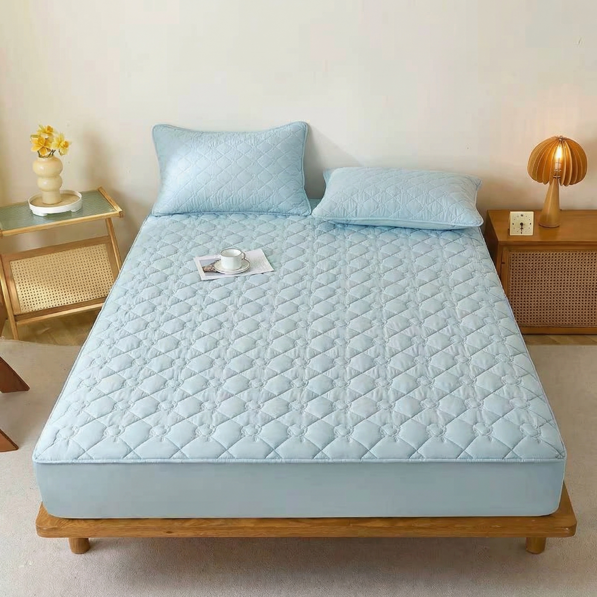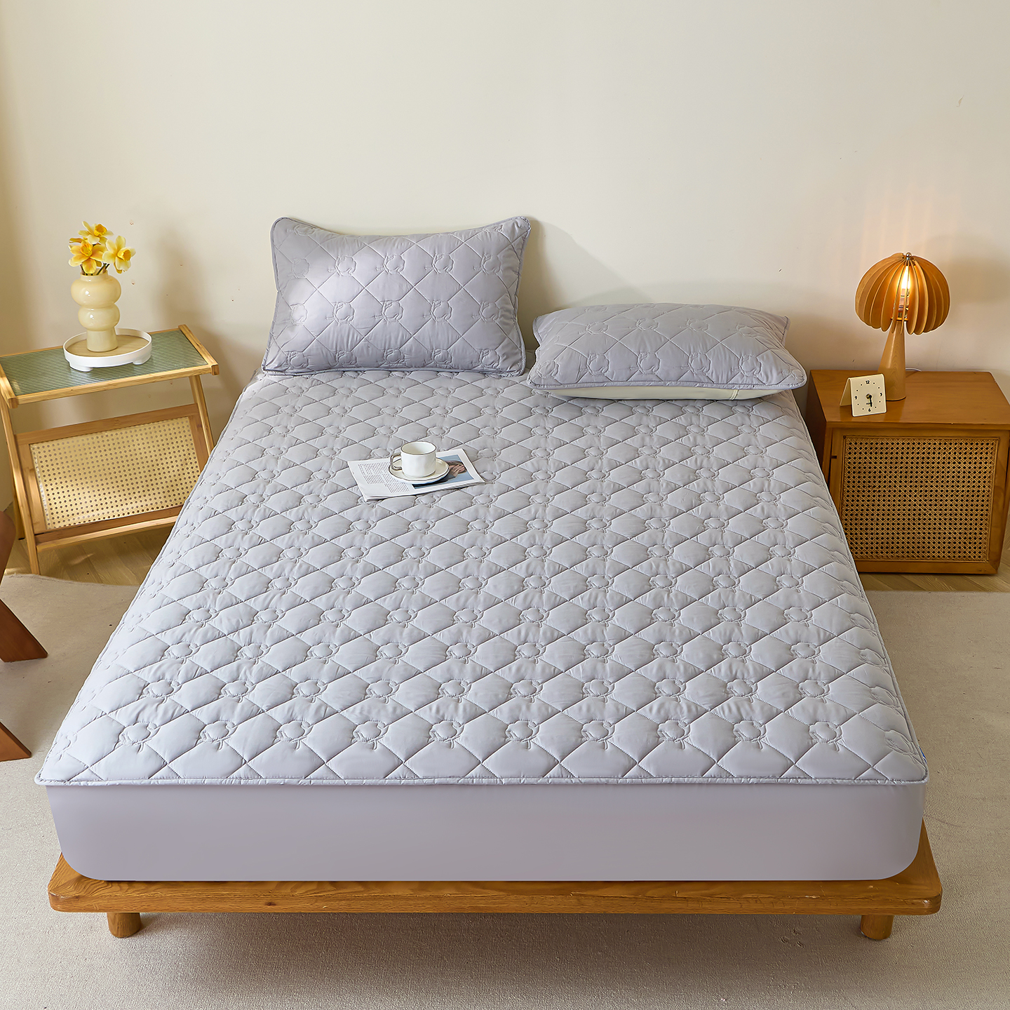 (总)彩亿家纺 2026新款A类纯棉夹棉床笠三件套全包防滑床垫保护套-棉花