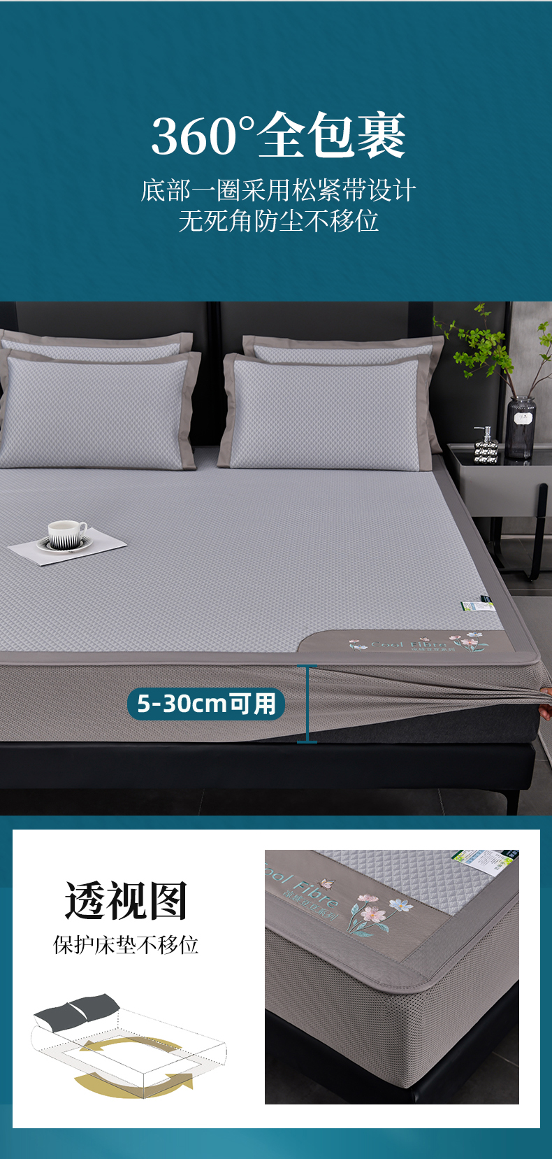 (总)小牛席业 2026春夏新款轻奢半定位凉感冰丝席凉席席子系列床笠款,轻奢半定位-粉色 床笠款,轻奢半定位-灰色 床笠款,轻奢半定位-蓝色 床笠款,轻奢半定位-抹茶 床笠款,轻奢半定位-香槟 床笠款