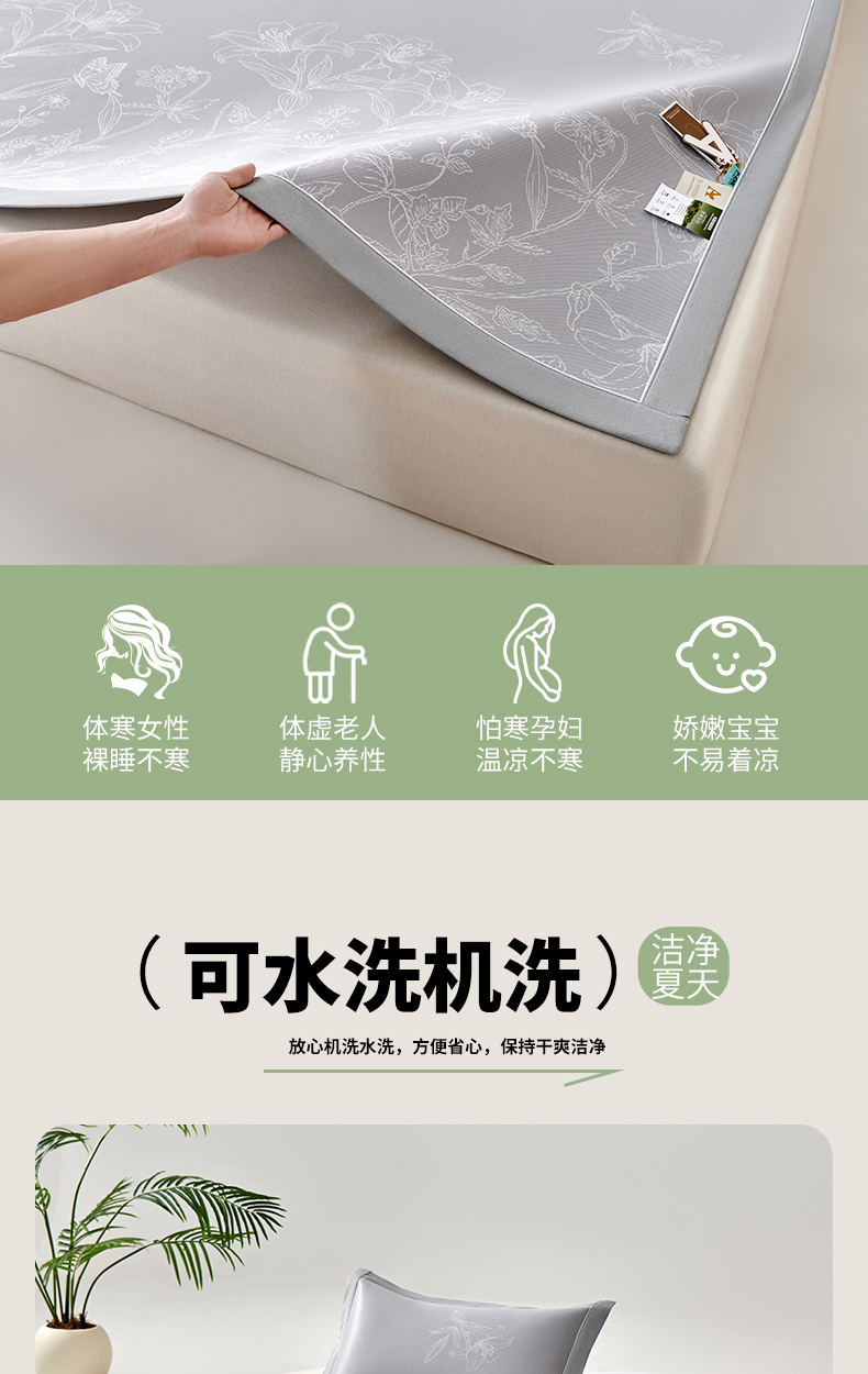 商品名称:(总)小牛席业 2026新款【实拍风格】双PE凉感-百合清凉冰丝席系列凉席藤席冰藤席冰丝席PE大提花
