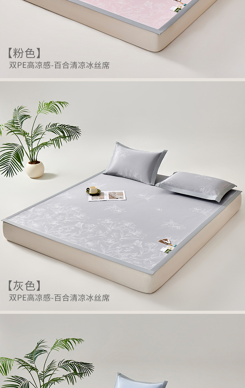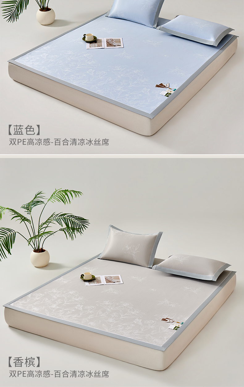 (总)小牛席业 2026新款【实拍风格】双PE凉感-百合清凉冰丝席系列凉席藤席冰藤席冰丝席PE大提花