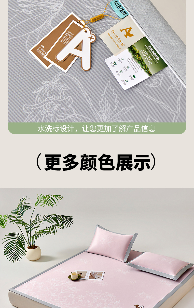 (总)2023新款超精密冰丝席-小斜纹系列-床笠款藤席凉席竹席,粉色,蓝色,绿色,银灰