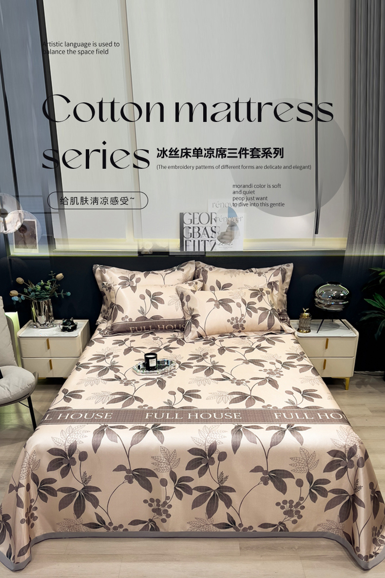 许林 2026新款冰丝凉席床单款凉席三件套 谷满,谷满