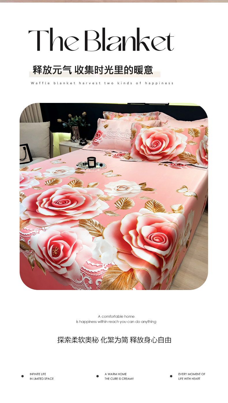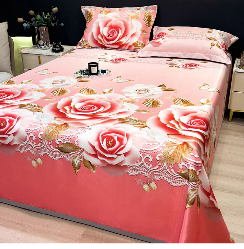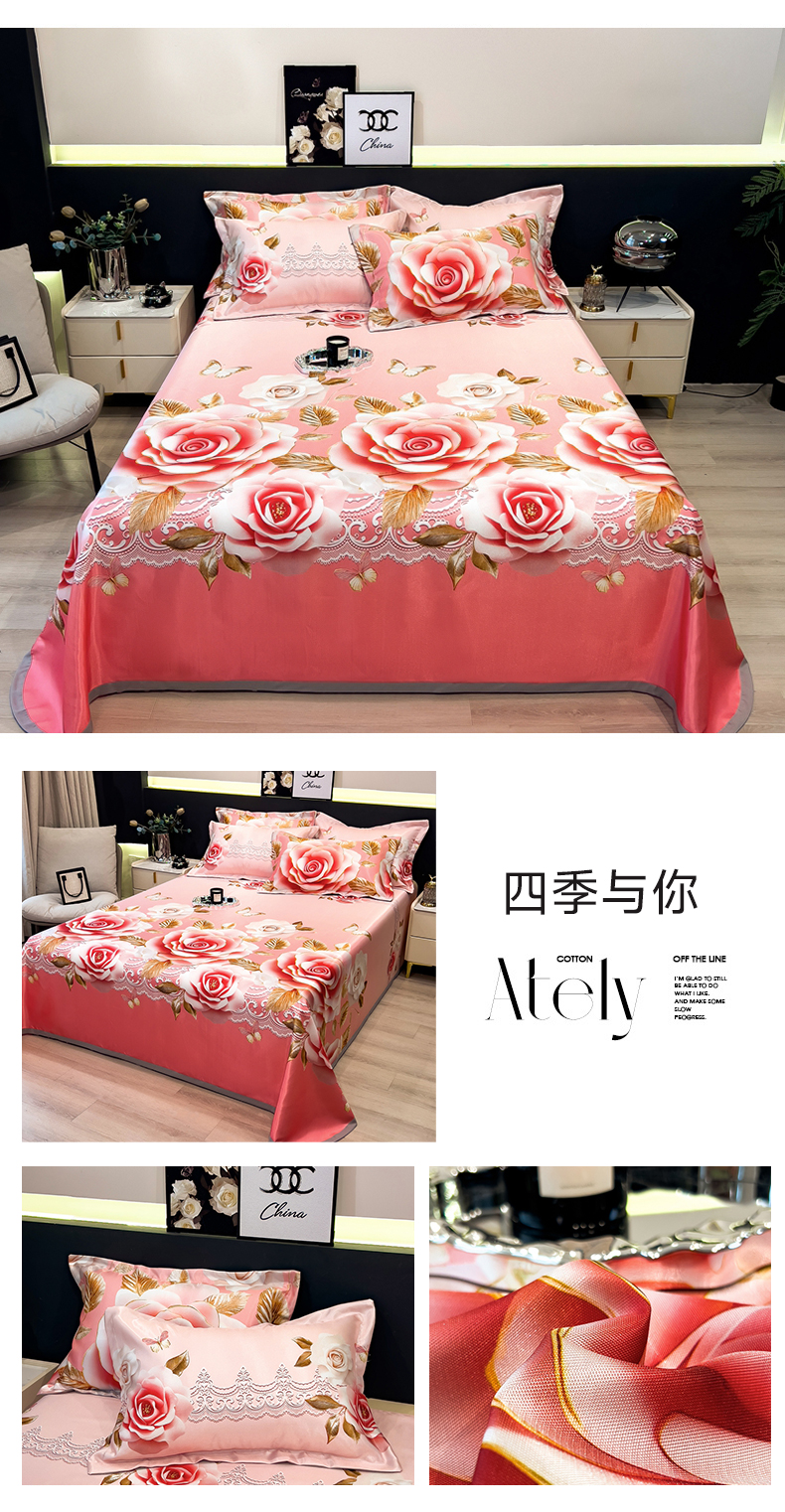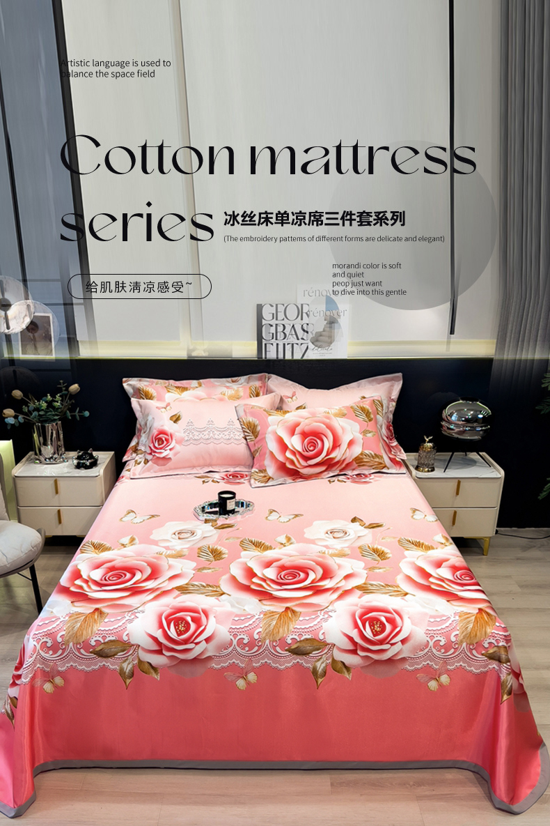 许林 2026新款冰丝凉席床单款凉席三件套 玫瑰佳人,玫瑰佳人