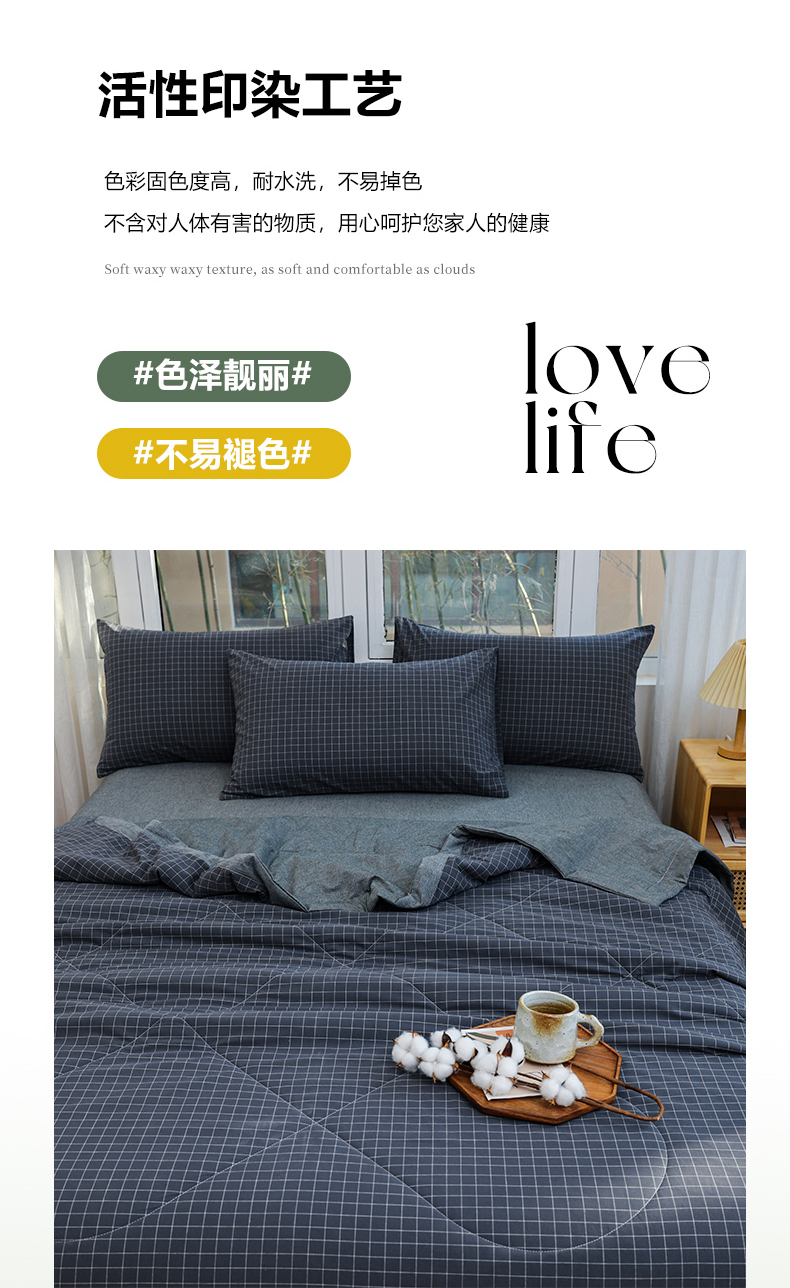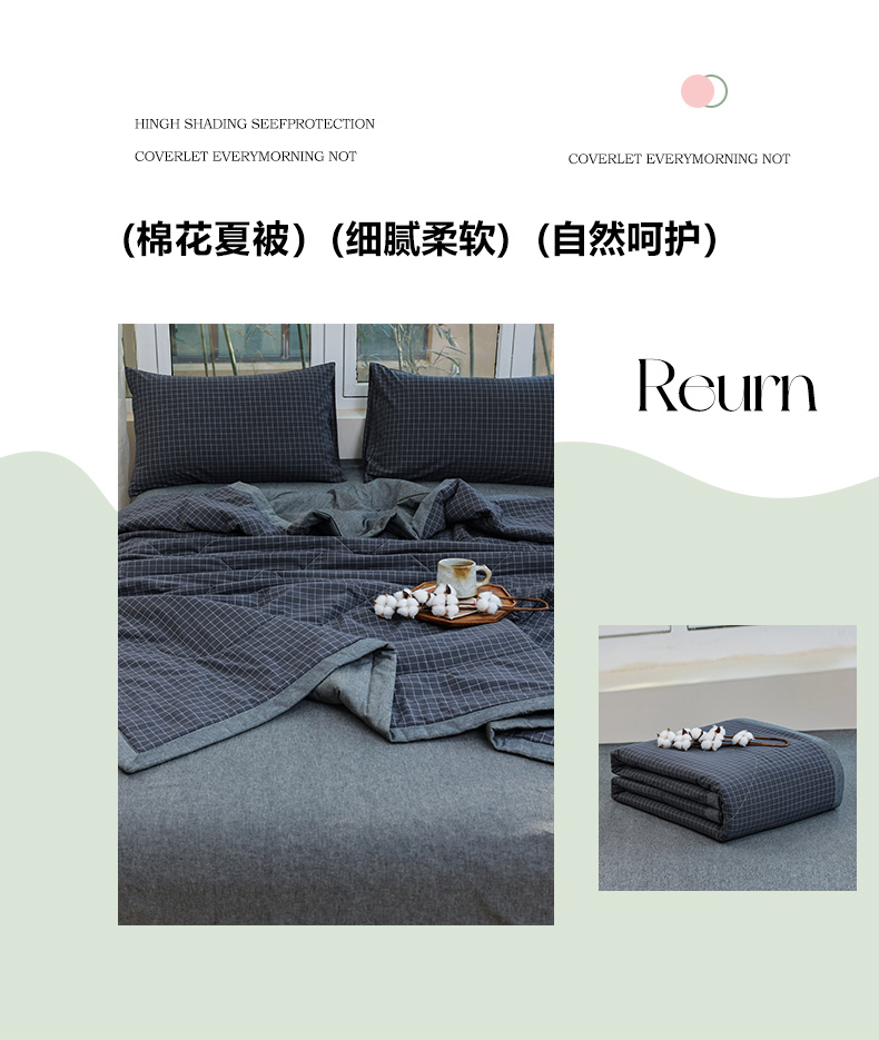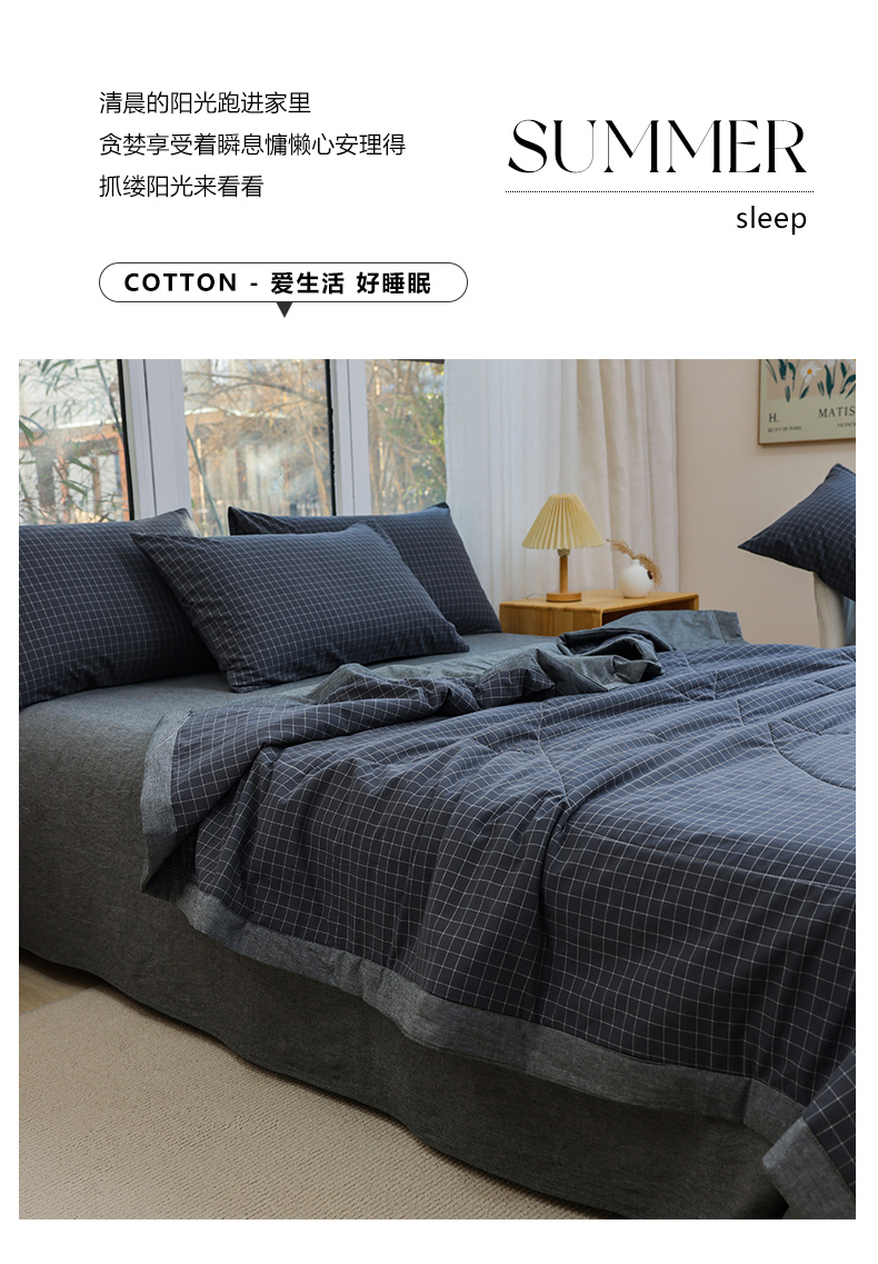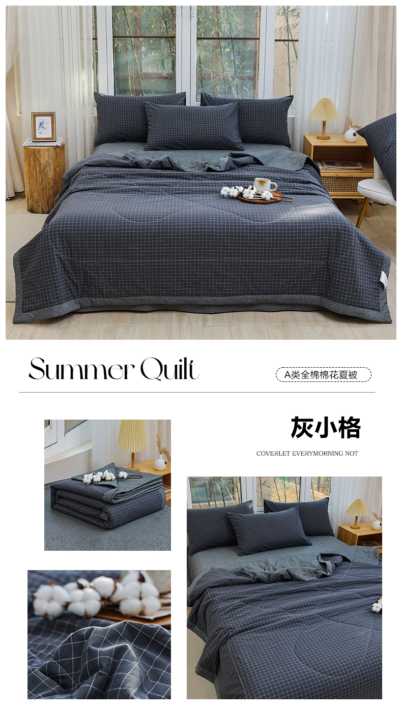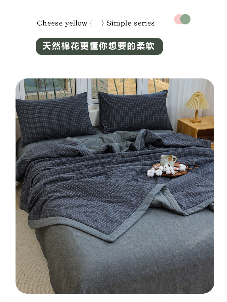 • 91家纺网 家纺一手货源 找家纺 柠萌家居 2026新款全棉色织水洗棉棉花夏被四件套里外全棉空调被 夏凉被被子被芯 灰小格