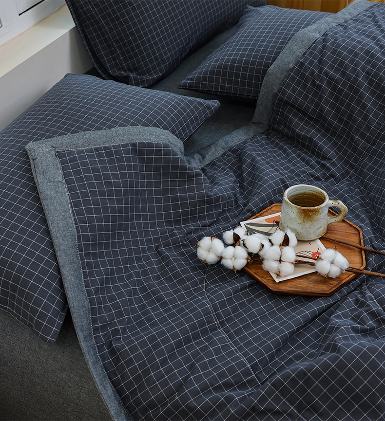 当前位置: 91家纺网 > 商品网购 > 被子 > 夏被 > 柠萌家居 2026新款全棉色织水洗棉棉花夏被四件套里外全棉空调被 夏凉被被子被芯 灰小格