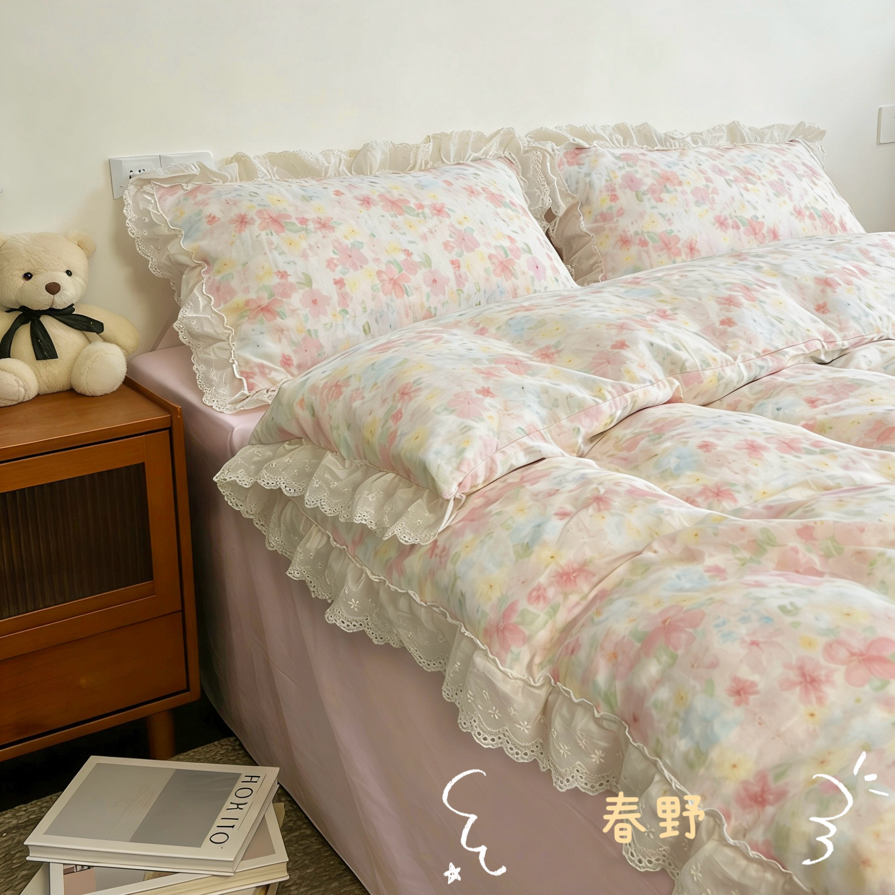 (总)荣轩家居 2026新款韩式浪漫花边工艺款全棉纯棉双层纱四件套(铺床版)