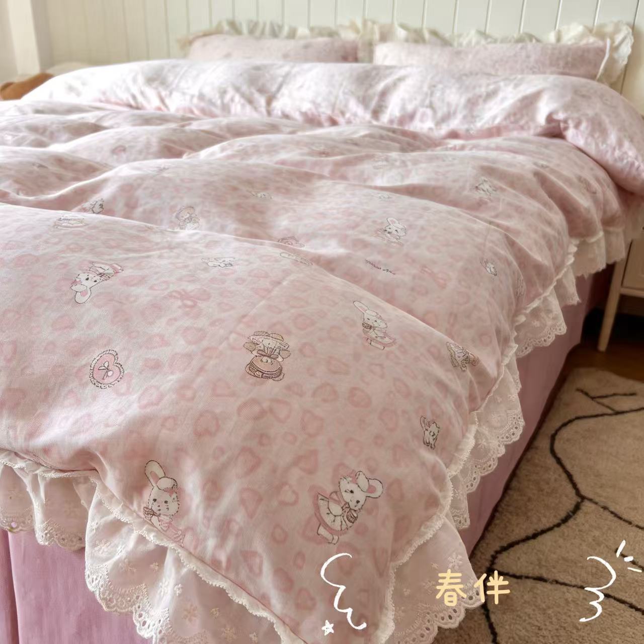 (总)荣轩家居 2026新款三丽鸥正版授权重工韩式蕾丝花边全棉纯棉双层纱四件套(铺床版),花房日记,甜梦日记,奶油芝士