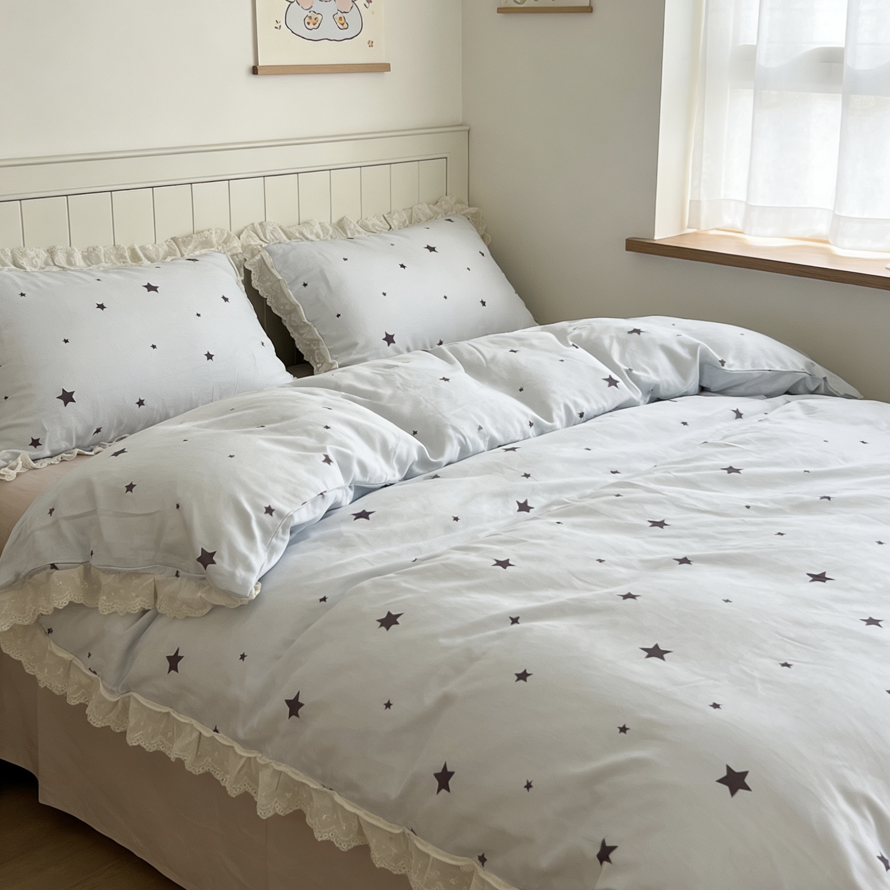 商品名称:(总)荣轩家居 2026新款韩式浪漫花边工艺款全棉纯棉双层纱四件套(铺床版)