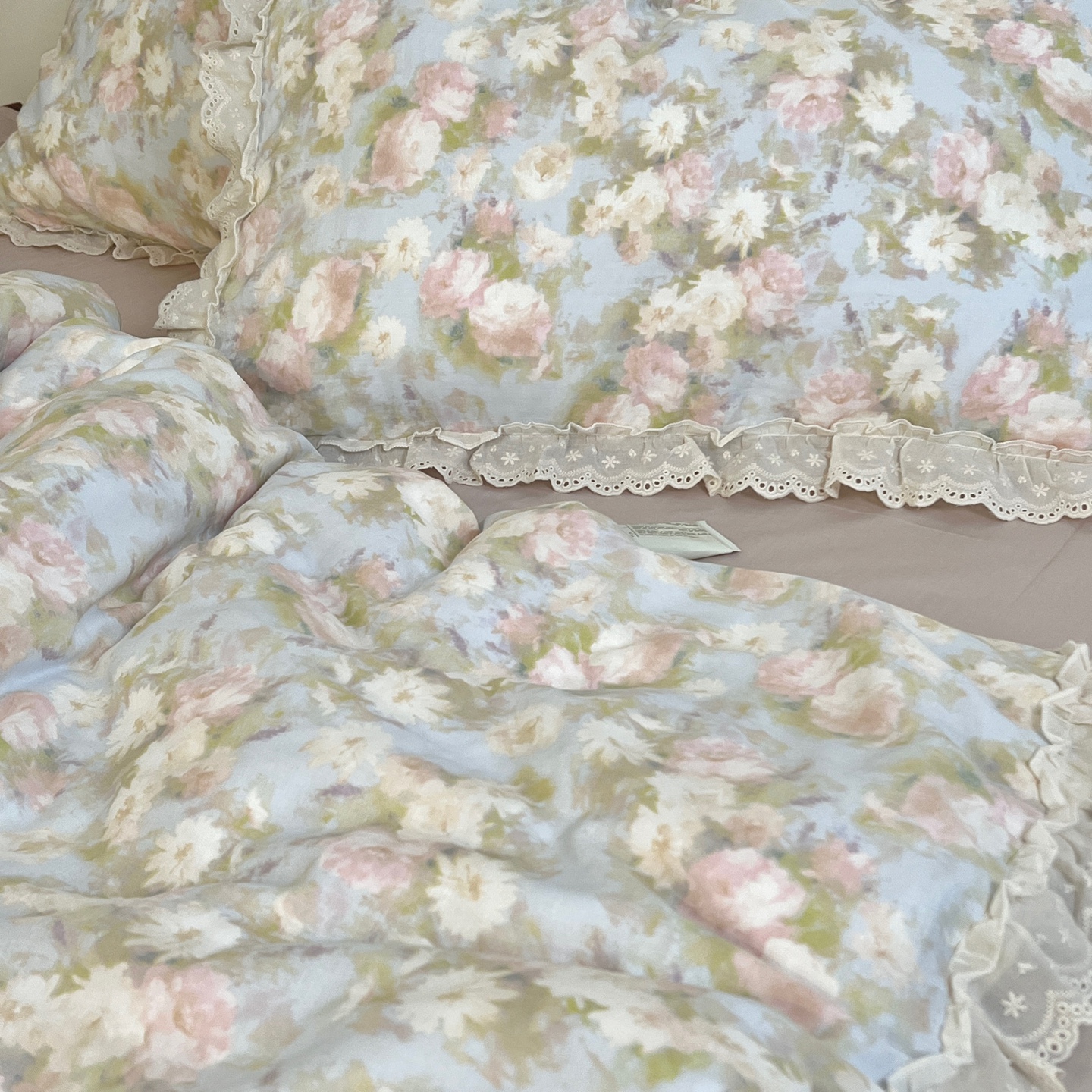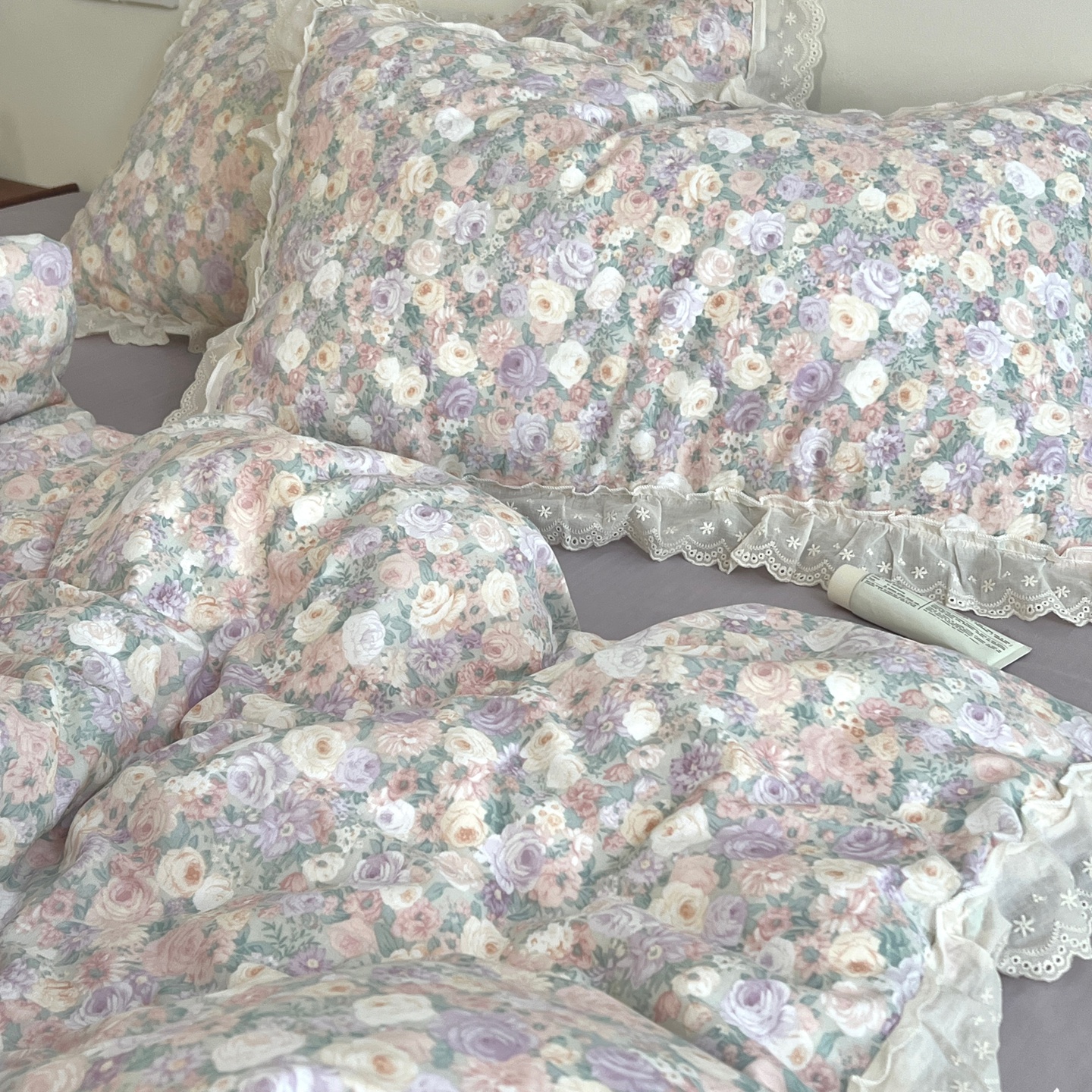 当前位置: 91家纺网 > 商品网购 > 床品套件 > 四件套 > 全棉普通四件套 > 荣轩家居 2026新款韩式浪漫花边工艺款全棉纯棉双层纱四件套(铺床版) 絮语