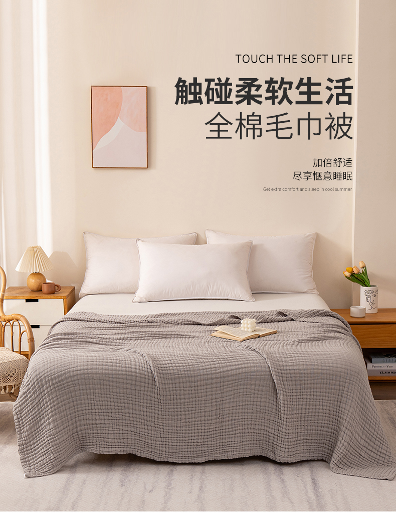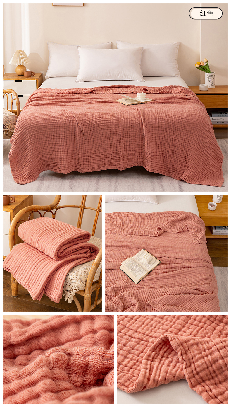 (总)萌飞 2026新款四层纱素色夏被被子被芯,毛巾被白色,毛巾被红色,毛巾被灰色,毛巾被卡其,毛巾被蓝色,毛巾被绿色,组合图