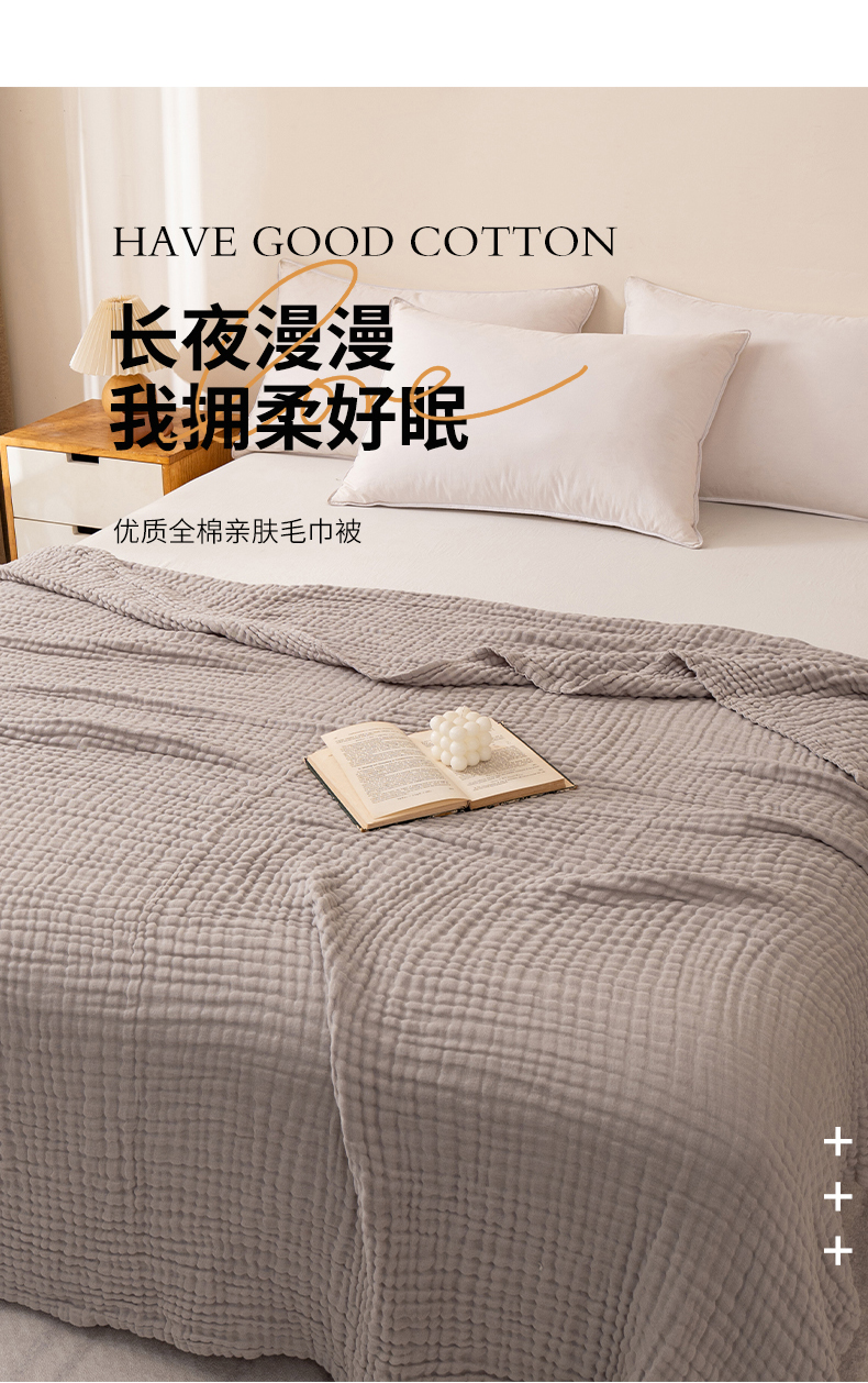 商品名称:萌飞 2026新款四层纱素色夏被被子被芯 毛巾被灰色