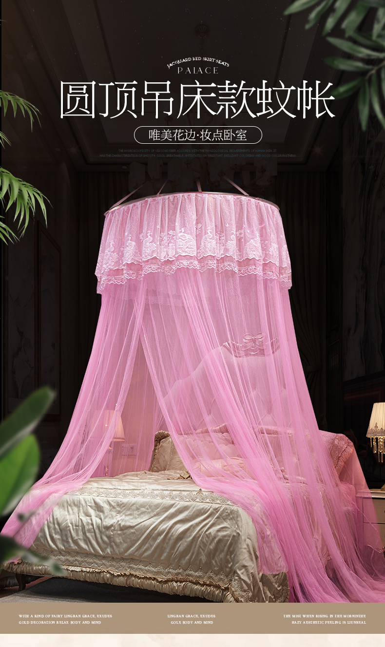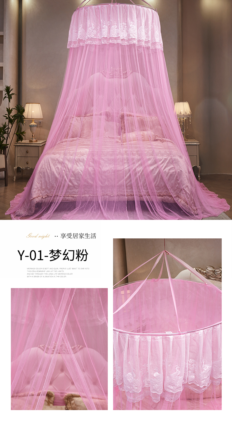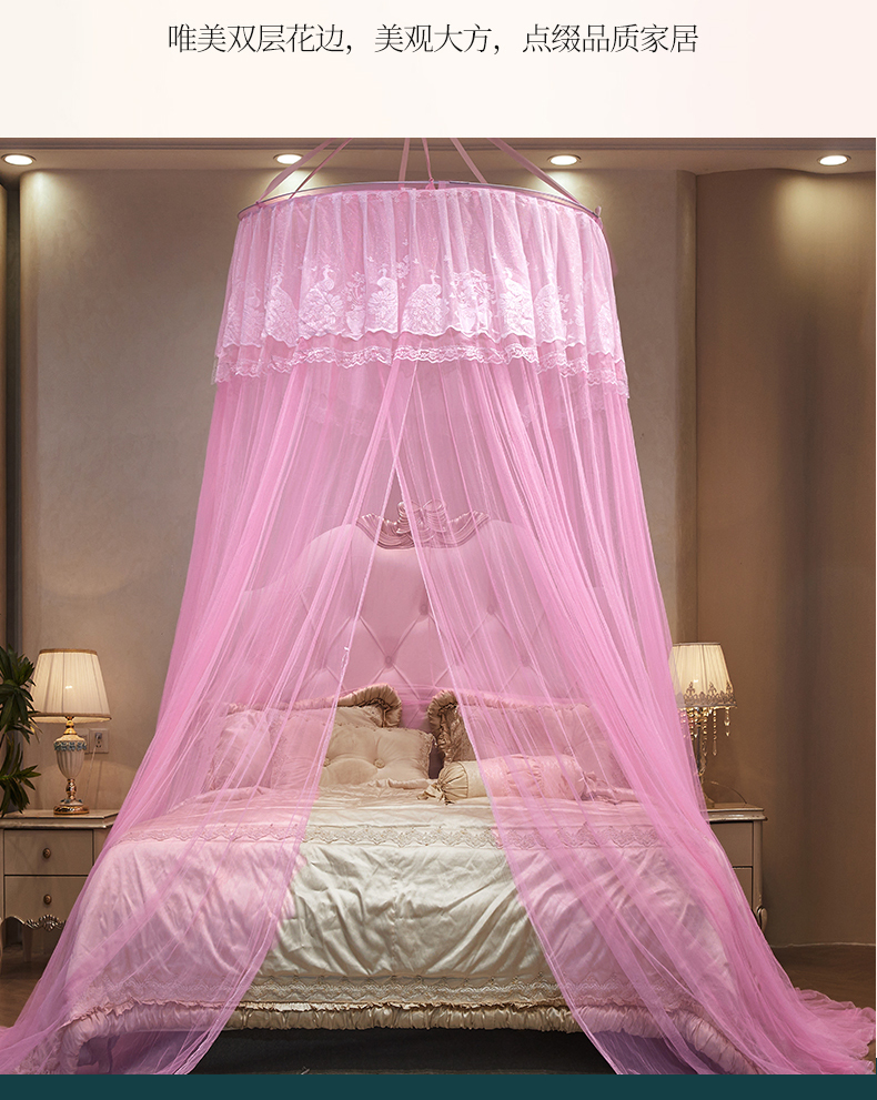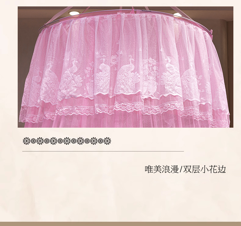 舞夜盛世 2026新款圆顶吊床款唯美浪漫双层小花边蚊帐 Y-01-粉色