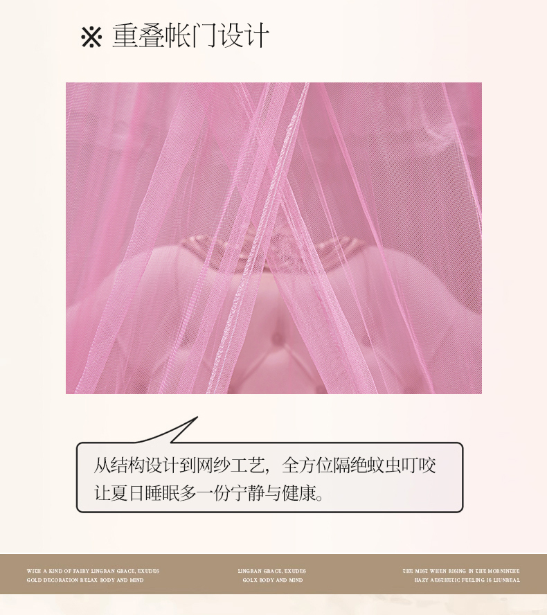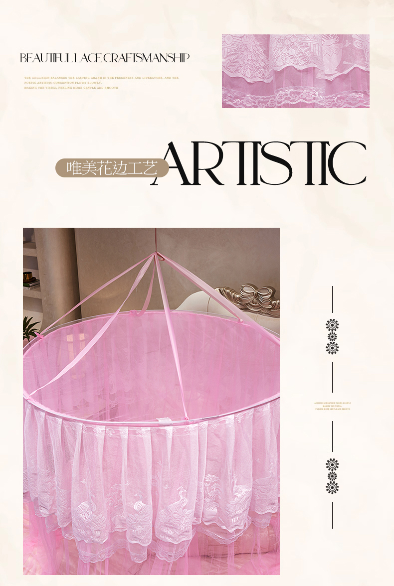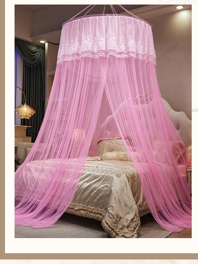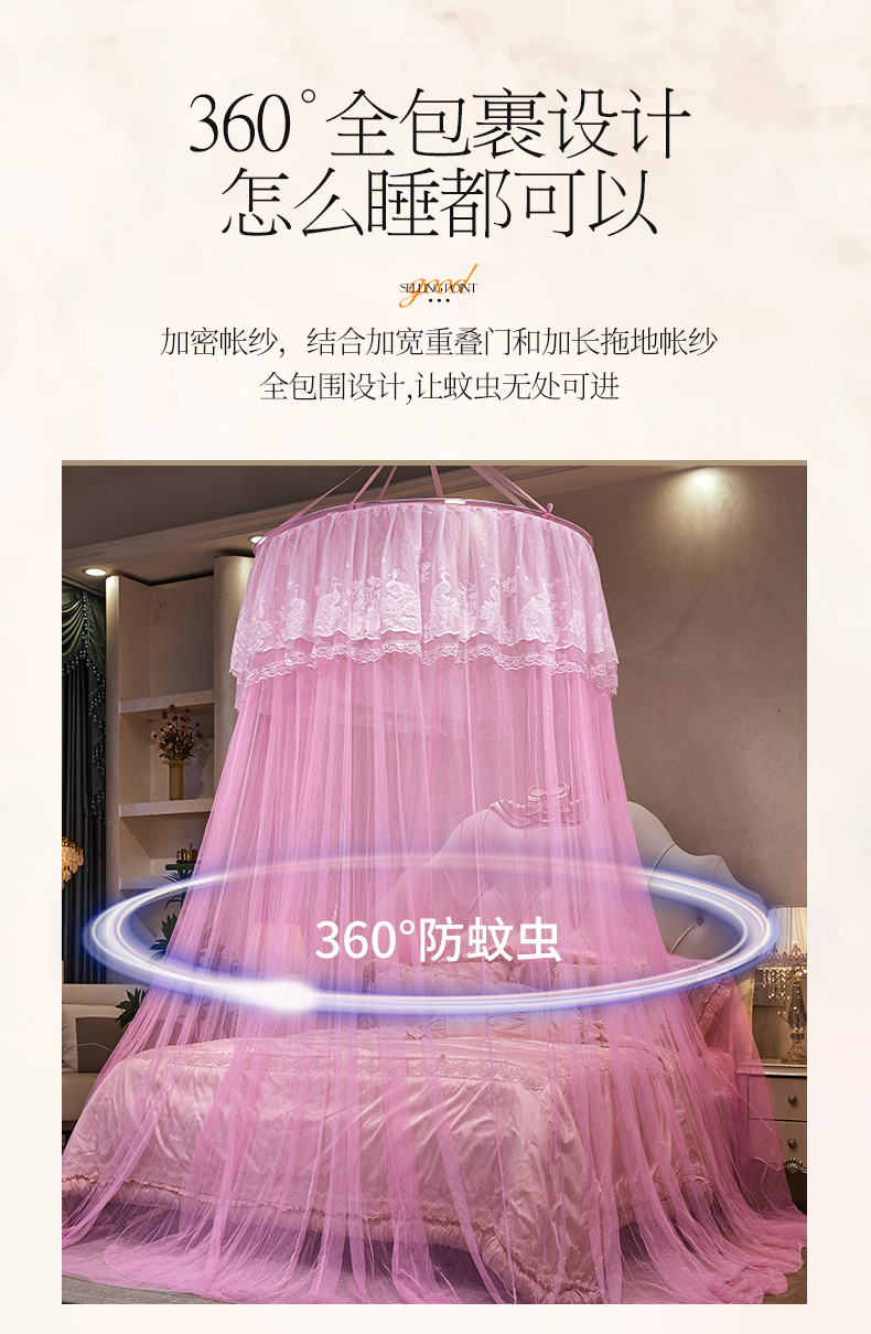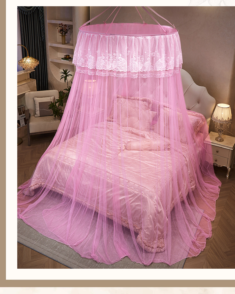 舞夜盛世 2026新款圆顶吊床款唯美浪漫双层小花边蚊帐 Y-01-粉色