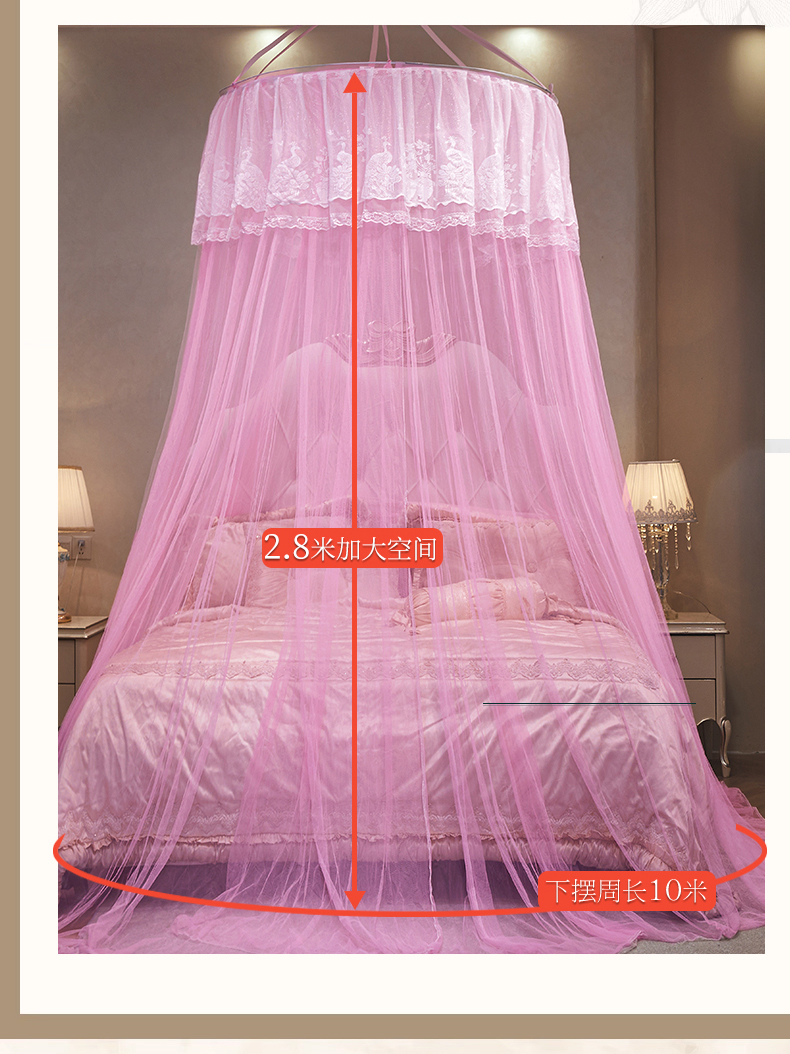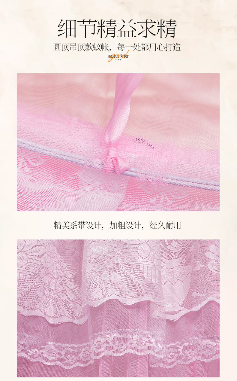 商品名称:舞夜盛世 2026新款圆顶吊床款唯美浪漫双层小花边蚊帐 Y-01-粉色