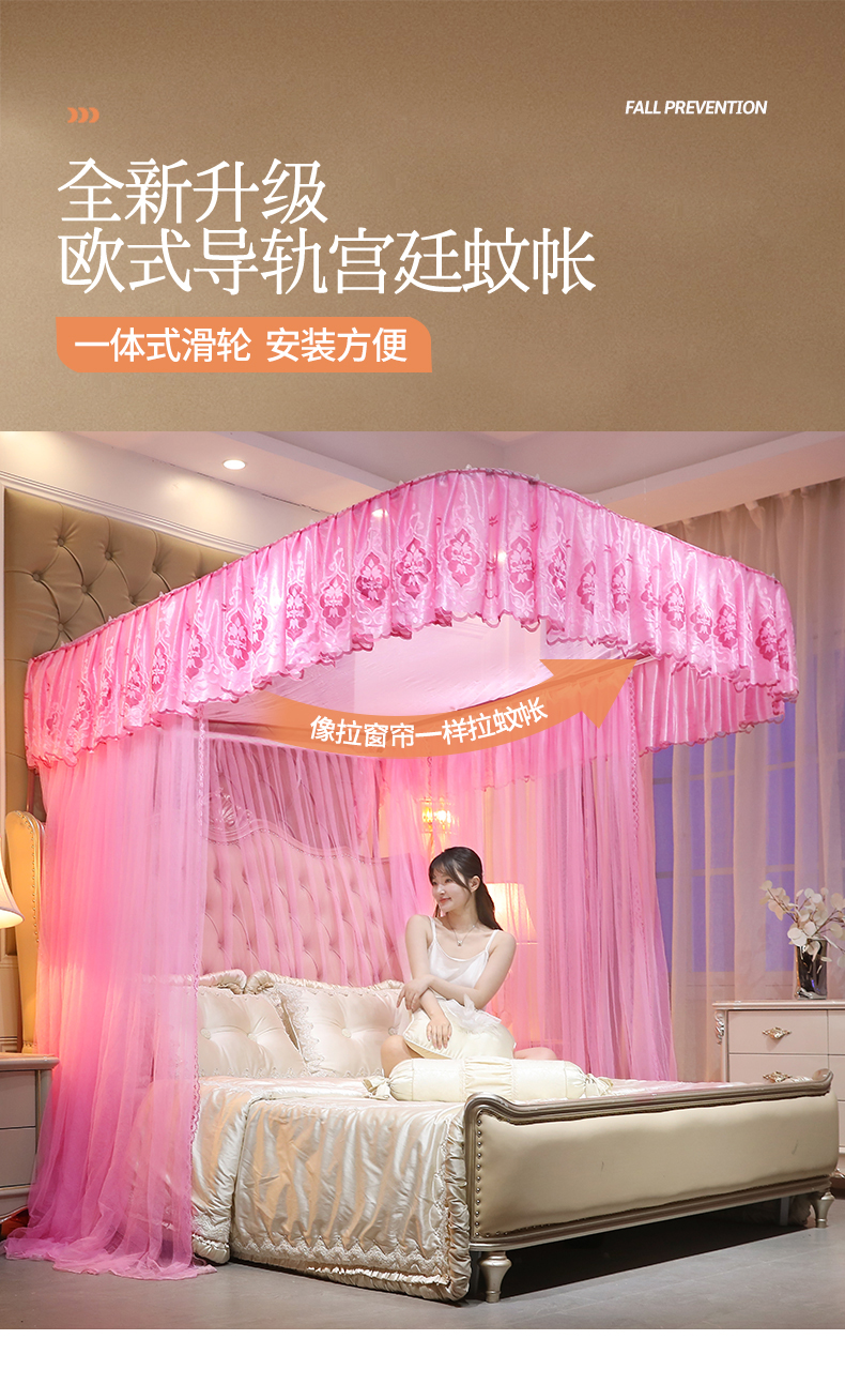 舞夜盛世 2026新款全新升级欧式导轨宫廷蚊帐-盛世流光 盛世流光-粉