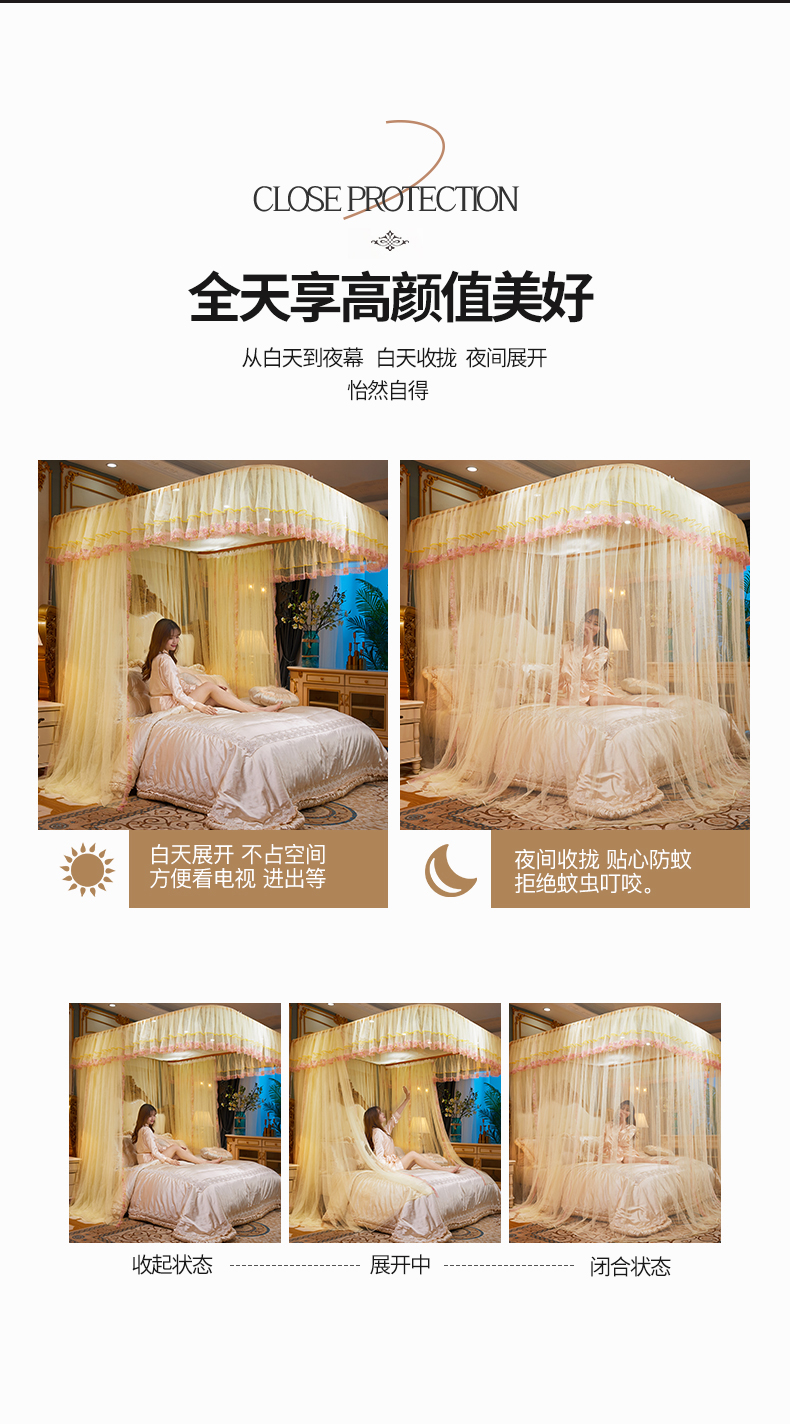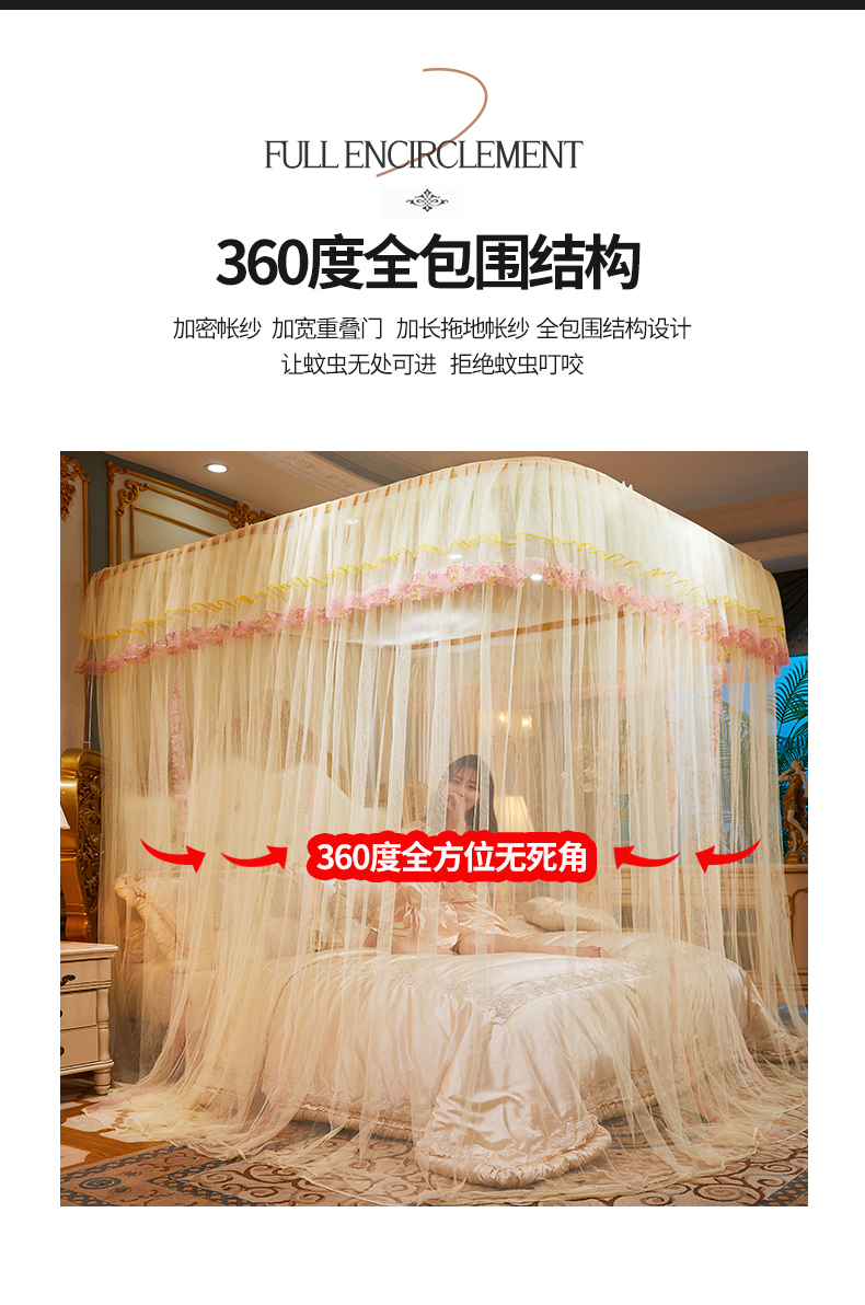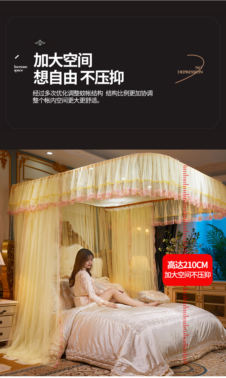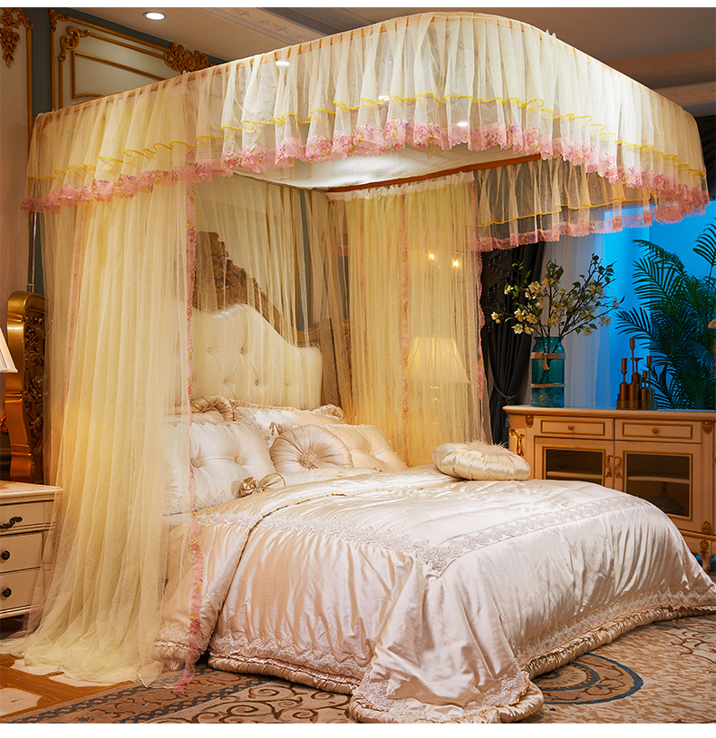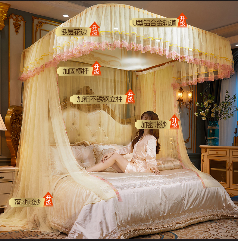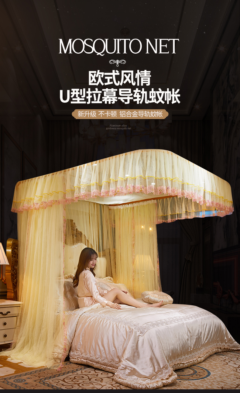 商品名称:舞夜盛世 2026新款u型拉幕导轨蚊帐轨道蚊帐落地宫廷蚊帐—春暖花开 春暖花开-黄色