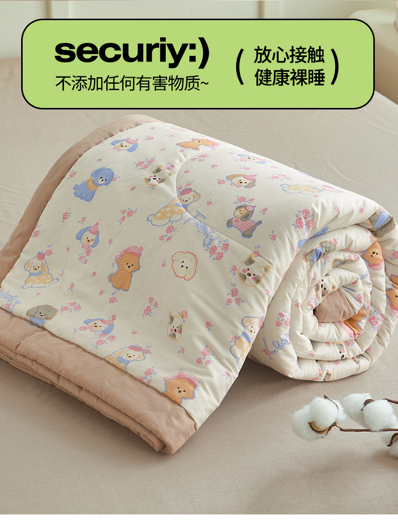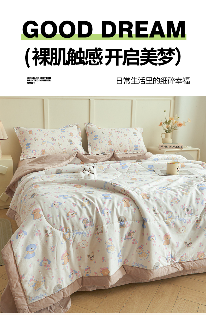 A类里外全棉12868夏凉被100%新疆棉纯棉全棉填充印花款空调被夏被 全棉印花 萌犬乐园