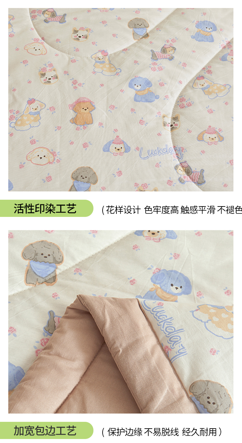 商品名称:A类里外全棉12868夏凉被100%新疆棉纯棉全棉填充印花款空调被夏被 全棉印花 萌犬乐园